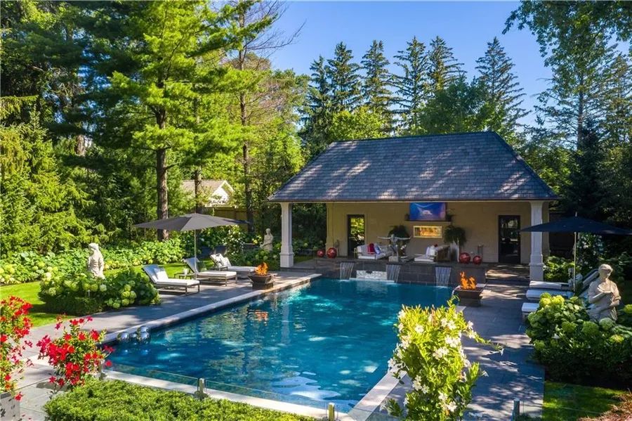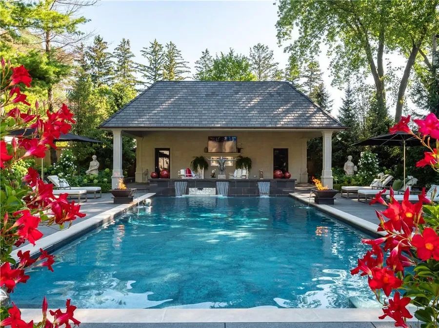 Drive Through The Gates And Discover The Grandeur Of This Palatial Estate 5 Beds | 7 Baths | 956 Sqm | 2,060 Sqm lot Oakville, Ontario, Canada PRICE: CA$ 11,750,000 15 Chartwell Road offers a lifestyle of unparalleled luxury. Drive through the gates and discover the grandeur of this palatial estate. South of Lakeshore,1 door from the lake on a half acre lot. Painstakingly curated, the contemporary limestone masterpiece you’ve been waiting for. Solid iron doors lead to a grand foyer revealing the opulent book matched marble floors. Floor to ceiling windows and French doors flood the house with light. Cascading waterfalls flank the hall. The Dining Room has statement lighting and servery making hosting a breeze. Soaring 18-foot ceilings and a grand gas fireplace are focal points of the Great Room, with captivating views of the resort style yard. Experience culinary excellence in the black lacquer and glass kitchen by NEFF that features top of the line appliances and a built in coffee machine and butler’s pantry. The intimate Living Room with fireplace is the ideal retreat. A main floor office with built-in cabinetry. 2 powder and 2 laundry rooms. The backyard oasis has a Gunite pool, waterfalls, fire bowls, covered terrace and outdoor kitchen and fireplace. The pool house has a change room,3-piece bath and servery. Towering trees surround the home and are positioned to create privacy. A stone driveway, circular fountain and lush gardens create a breathtaking landscape. Floating marble stairs divide the 3 levels of this home or, you can take the elevator. Skylights make the upstairs airy and bright. The principal suite has nearly 13-foot ceilings, an exquisite 6-piece ensuite and 2 walk-in closets. A private balcony overlooks the yard. 3 additional bedrooms have 10-foot ceilings, private ensuites and walk-in closets. The LL caters to all family members. A 5th bedroom/ensuite makes an ideal guest suite. Gym, R/I Golf Simulator, home theatre, Wine Cellar and doggie Spa. The Games and Rec Rooms have a 2nd kitchen and walkout. Heated garage, baths and LL floors. Automation. Designed by Bill Hicks and features the artistic creativity of the KT Design Group. Located on Oakville’s Street of Dreams, this is an iconic living space designed to impress. Property type: House Floors: 2 Year built: 2015 Price/sqm: $9,013 ——— RE/MAX Escarpment & Niagara Realty 502 Brant Street, Burlington, ON L7R 2G4, Canada Phone: +1 905.842.7677 Email: LUXURYEN@RMXEMAIL.NET CONTACT TEAM * ALEX IRISH (SALES REPRESENTATIVE) Phone: +1 905.842.7677