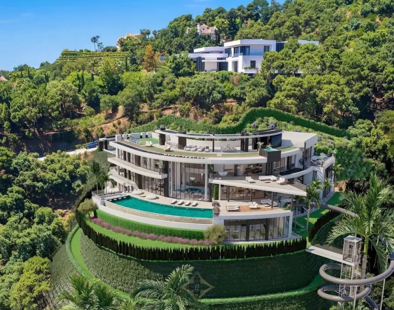 • Elite Details: Private helipad, gym, wine cellar, and state-of-the-art home automation.