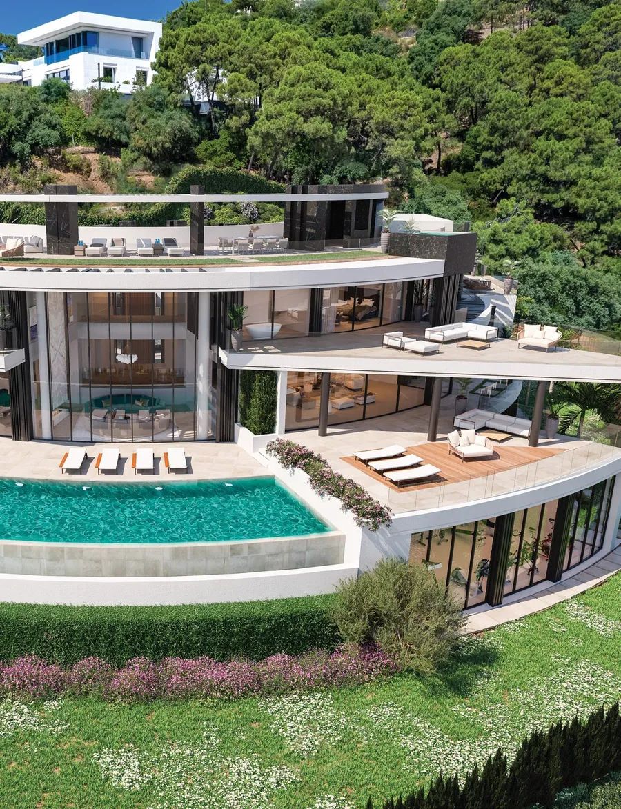 Nestled in Benahavís, Málaga, this 2,800 m² curved-design villa on an 8,000 m² plot redefines luxury living.