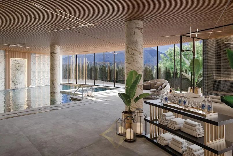 • Ultimate Wellness: Heated indoor and outdoor pools, solarium, and therapeutic spa circuit.