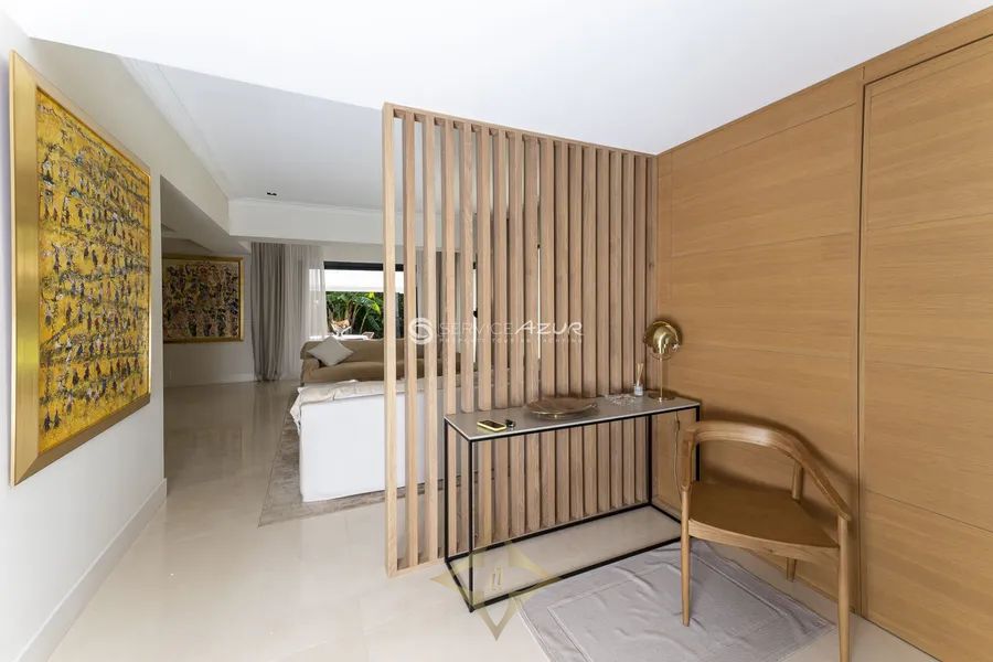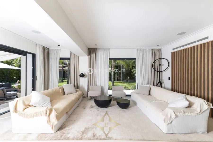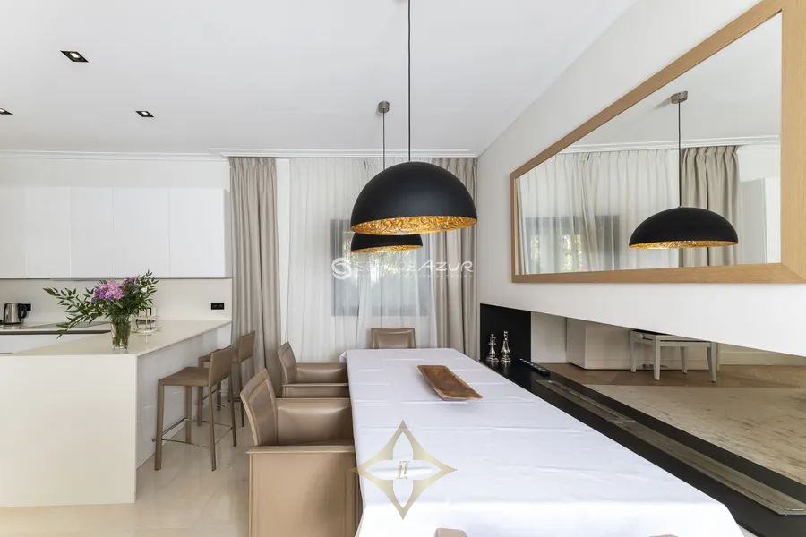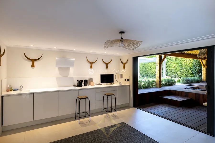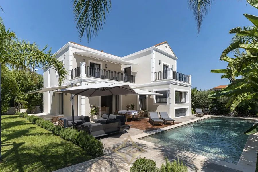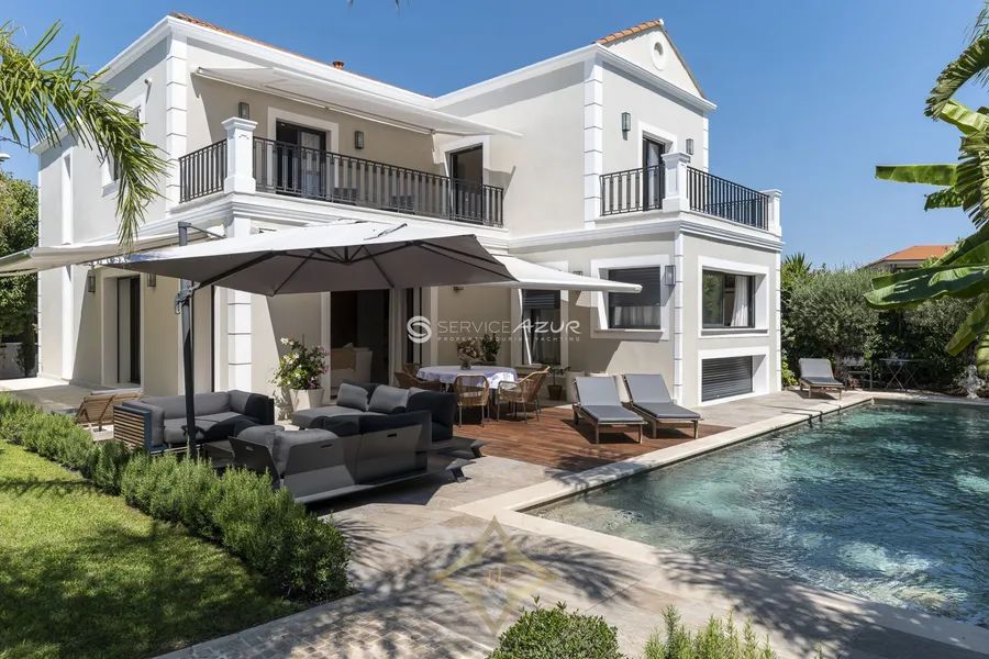 This tastefully renovated villa, nestled in the prestigious Cap d’Antibes and just a 10-minute stroll from Les Pêcheurs beach, offers a serene retreat with a discreet, minimalistic classic design. Spanning 250 sqm, the villa features a spacious living room, a modern fitted kitchen on the ground floor, and three bedrooms on the upper floor, each with its own en-suite bathroom and two boasting private terraces. The 1,100 sqm garden is an oasis of Mediterranean flora and includes a shaded pergola and a large swimming pool surrounded by sun loungers, perfect for relaxation and entertainment. Complete with air conditioning, electric shutters, a home cinema, an independent guest house, and secure parking for three cars, this property provides modern comforts within a tranquil and stylish setting. Its prime location offers convenient access to local shops and restaurants, enhancing its appeal as a superb residential or holiday home.