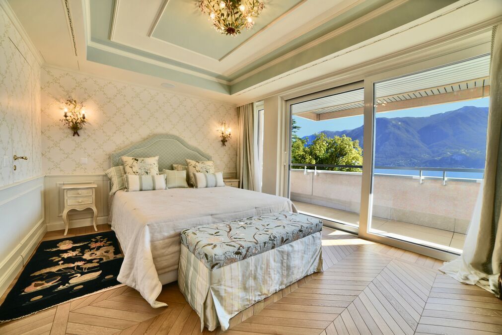 Large living room with dining area, bar area and terrace with lake view; bright kitchen with terrace overlooking the lake; 5 bedrooms, 8 bathrooms (one of which 1 bathroom with hammam with marble bench); 4 wardrobes; 1 library with terrace overlooking the lake, office; 2 pantries, laundry.