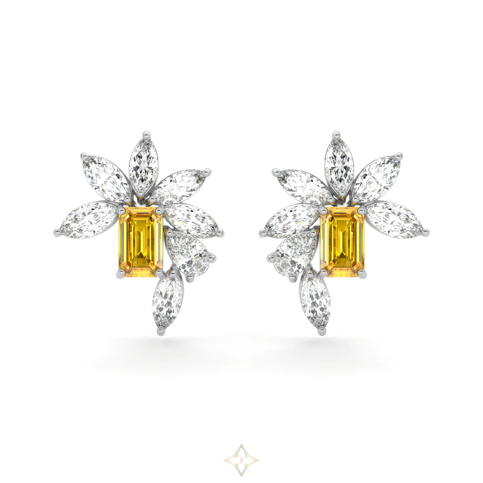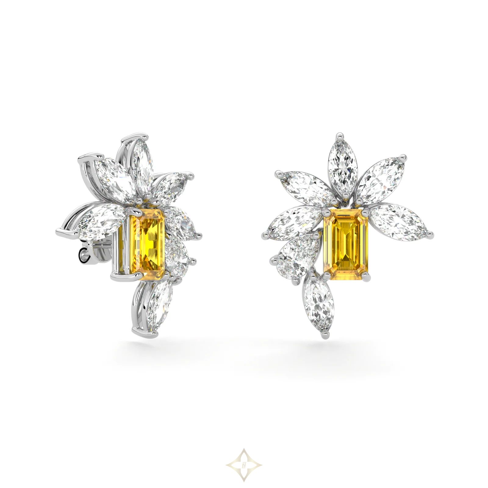 Emerald Cut Yellow Diamond and Marquis Diamond High Jewellery Earrings