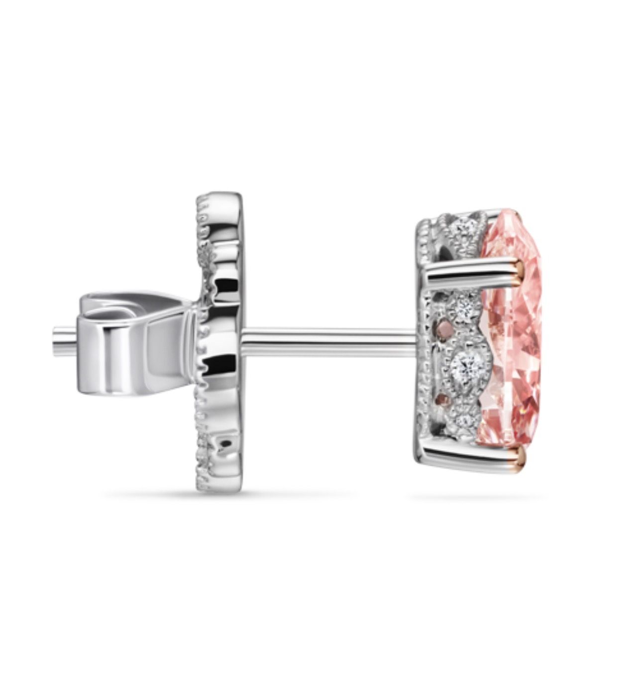 Engraved Pink Oval Diamond Stud Earring
