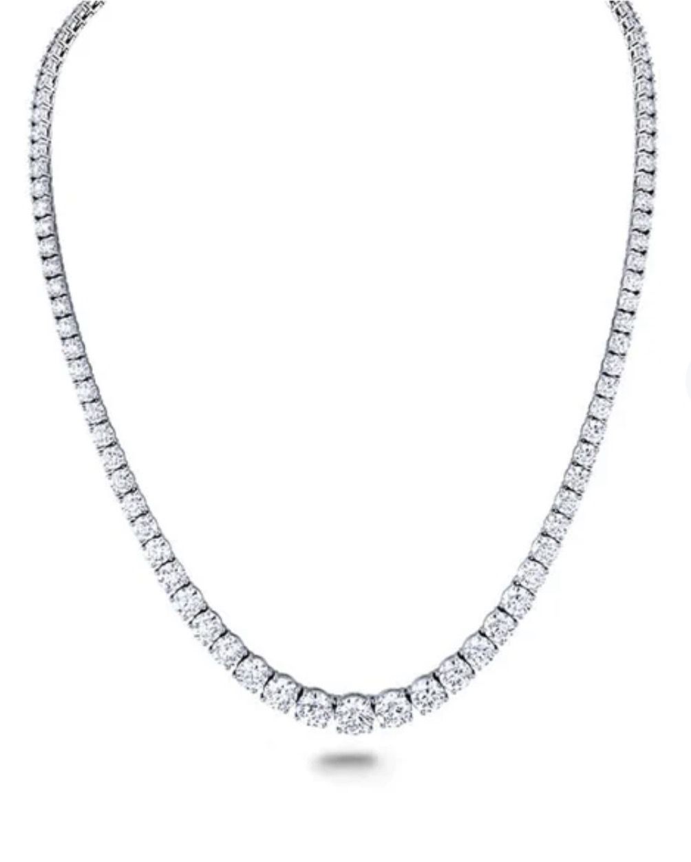 This necklace is composed of brilliant diamonds set in platinum. Its diamond-adorned Riviera design offers a timeless, sophisticated look guaranteed to dazzle. Each diamond is hand-selected for maximum brilliance and quality, ensuring a beautiful and durable piece perfect for any occasion.