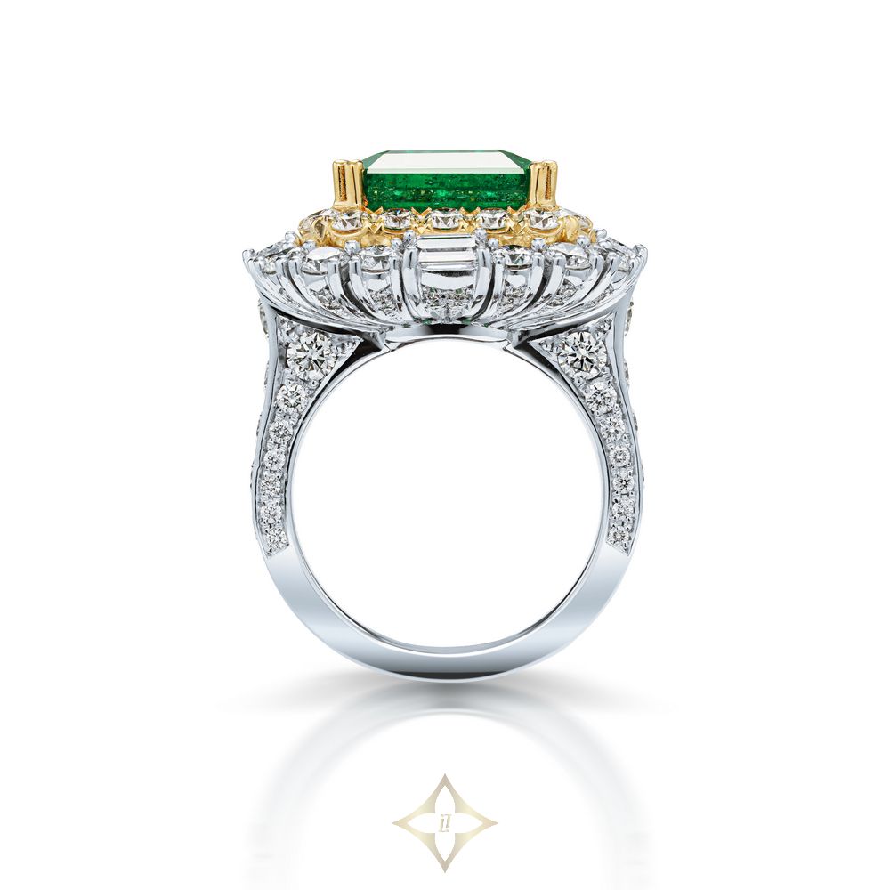 The setting part that directly touches the emerald is a combination set with 18K yellow gold, and the ring is set to make the emerald stand out more.