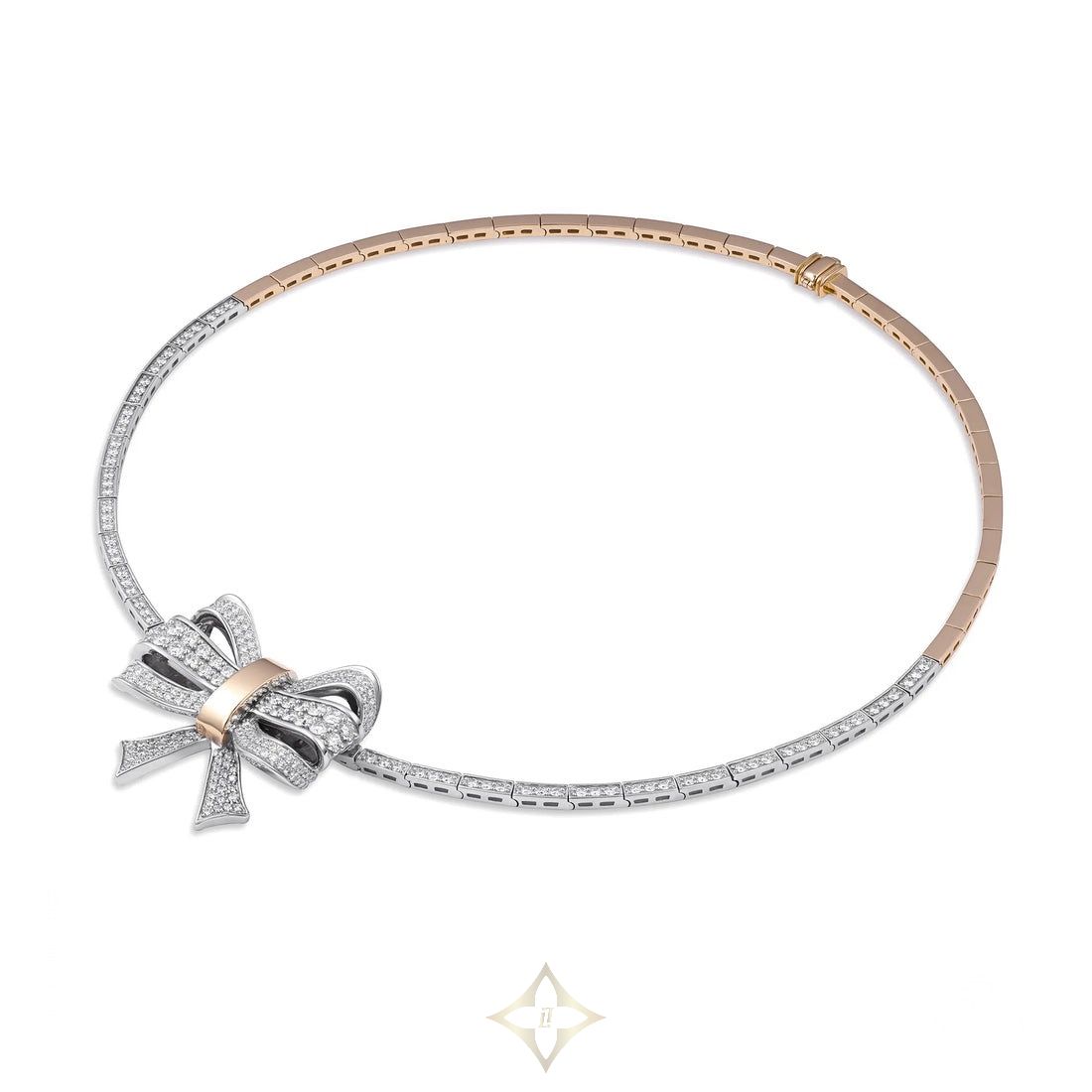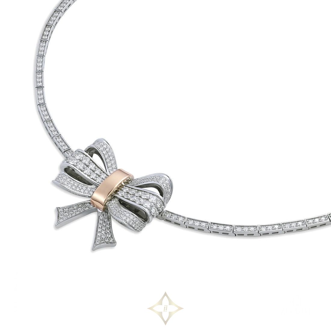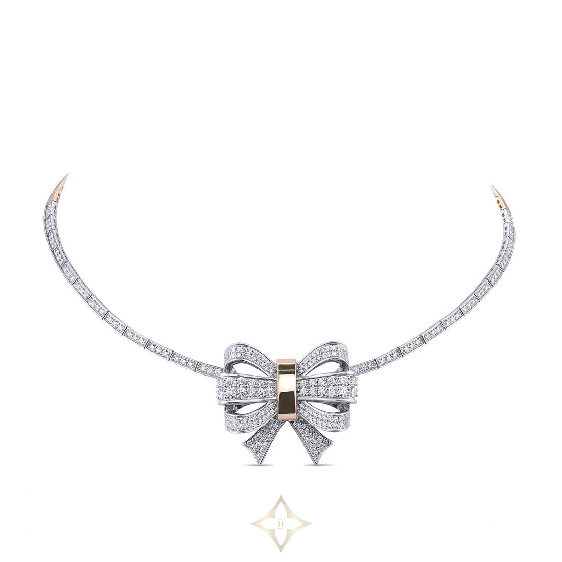 A bow. A knot. A loop, eternal. Zevaher Eterna celebrates the beauty of unbreakable bonds — each curve and contour shaped by the timelessness of love, friendship, and memory. The Eterna Signature Necklace, crafted in dual-toned 18K gold and adorned with 258 pavé-set diamonds, frames the neckline with Zevaher’s signature bow motif — an enduring emblem of elegance, memory, and love that lasts beyond a lifetime.