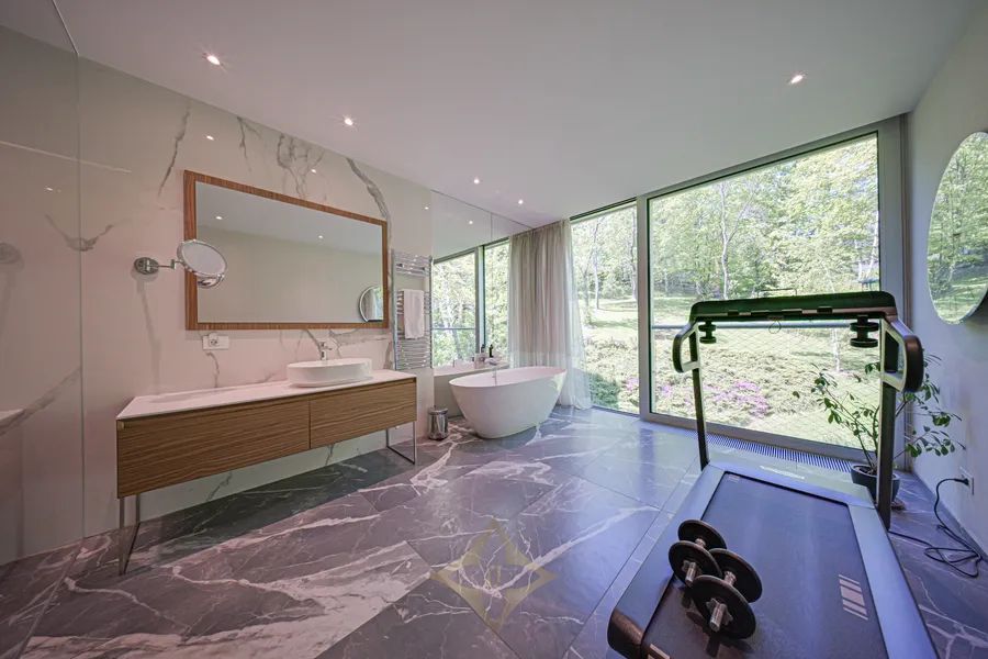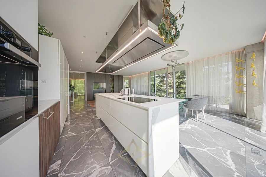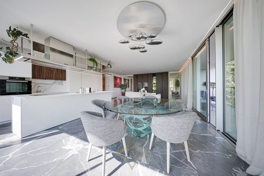 Layout: spacious living room with large panoramic windows, connected to a spacious additional living room with dining area and modern kitchen, master bedroom with a huge bathroom with toilet and mini spa area), two additional bedrooms, two bathrooms with toilets, large utility room, terrace with picturesque views.