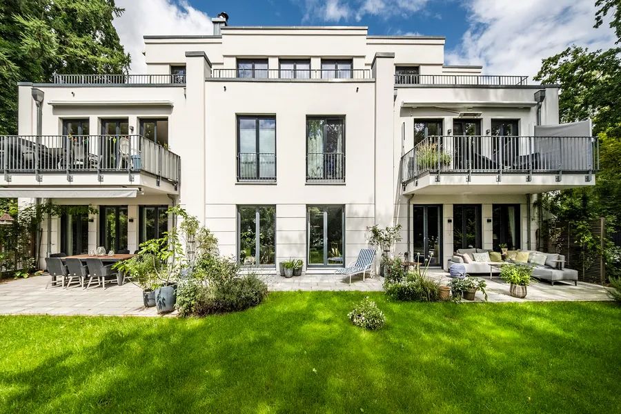 The spacious, barrier-free apartment offered here provides approximately 250 m² of exclusive living comfort, complemented by an idyllic, secluded garden with large terraces. The building’s clear architecture, with elegant facade elements and high-quality construction, creates the perfect conditions for stylish living.