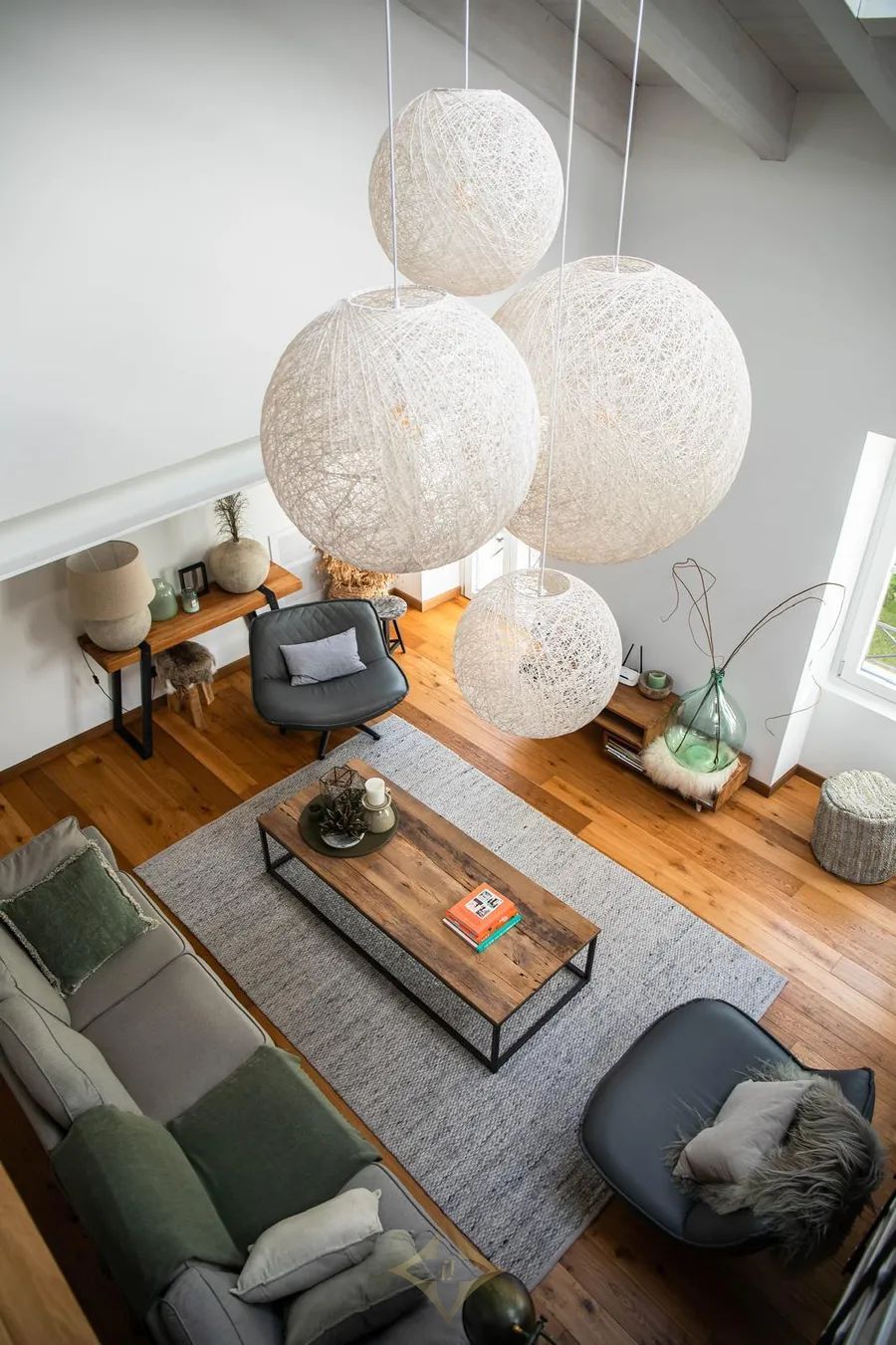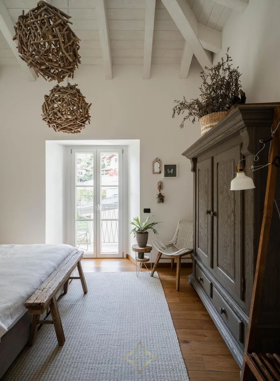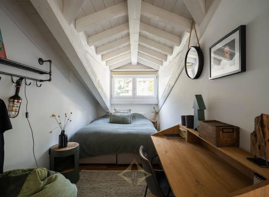 High ceilings with exposed wooden beams, Velux skylights that let in plenty of natural light
