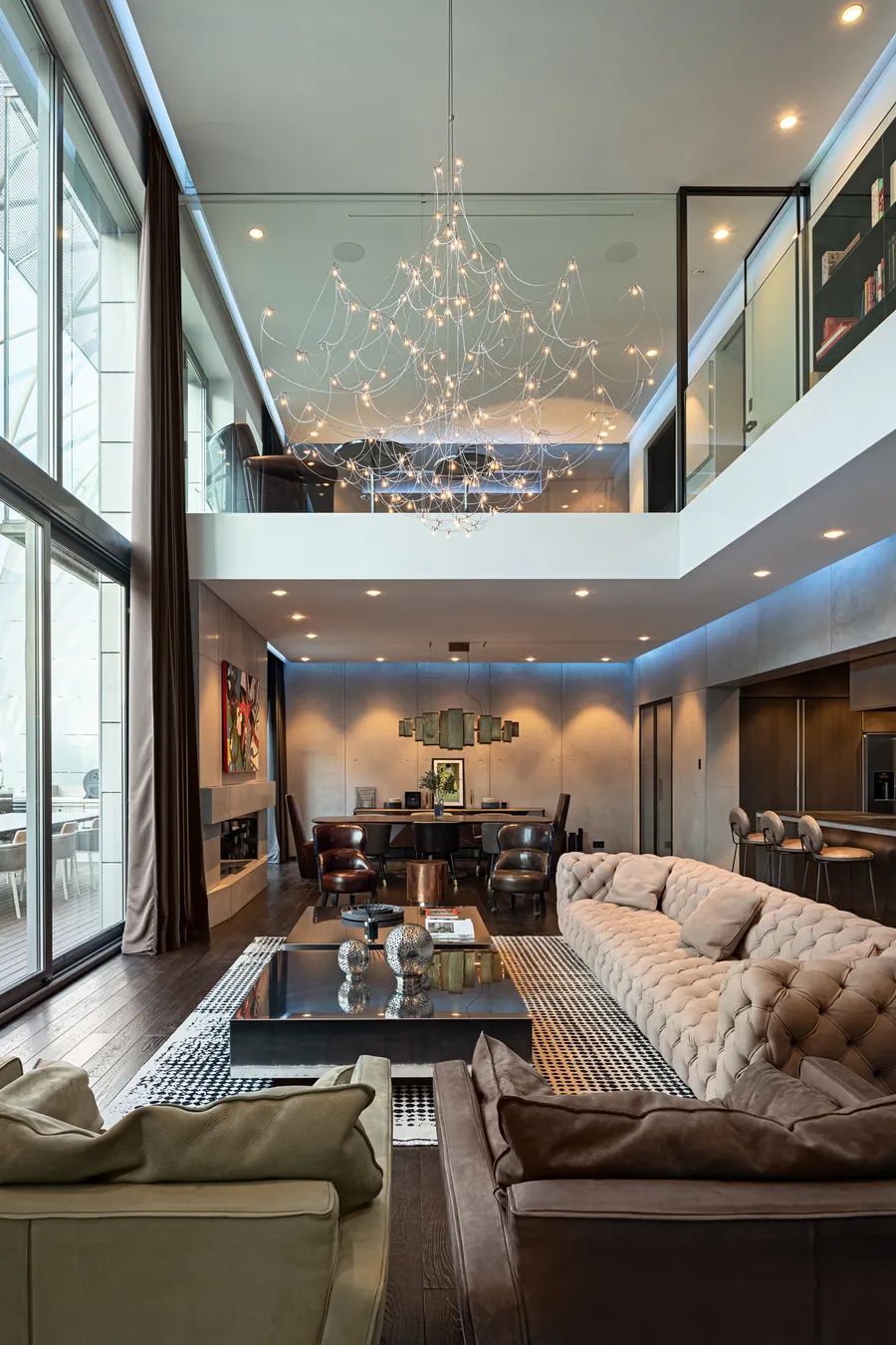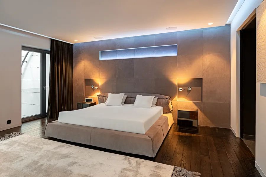 Additional highlights include a separate wine cellar, two luxurious bedroom suites each with ceiling-mounted projectors and spacious walk-in closets, and high-end bathrooms featuring intelligent shower and water management systems. Underfloor heating, electronically operated blinds, an alarm and video intercom system with smartphone connectivity, and designer furnishings from leading European brands such as Baxter and Koket further elevate the sense of refined living.