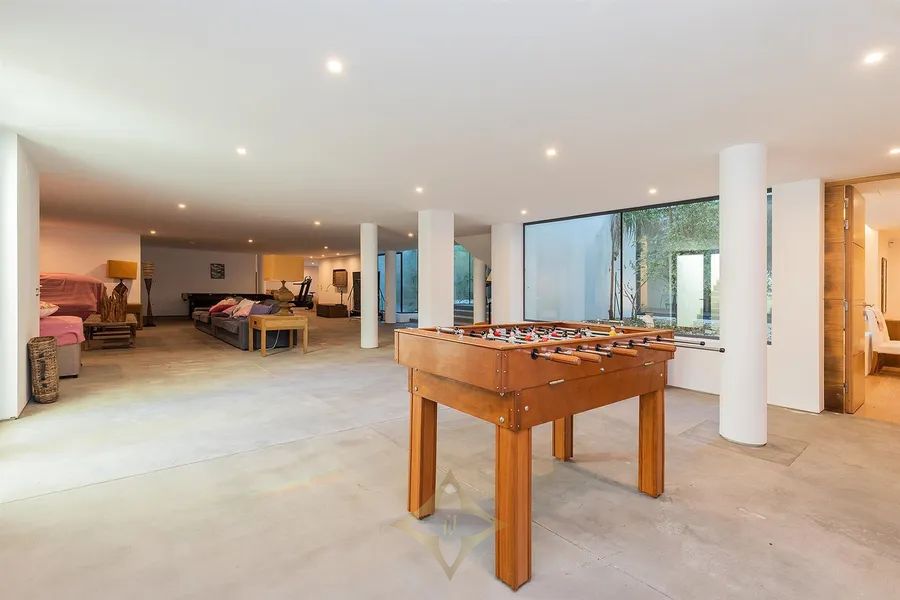 Inside, the villa features expansive open-plan areas, en-suite bedrooms, underfloor heating, central air conditioning, a games room, and a BBQ area—everything needed for unique moments of leisure and enjoyment.