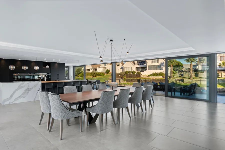 Tech-forward and secure, the home features a Sonos sound system, multiple TVs and DSTV decoders, Wi-Fi automation for lighting, pool and geysers, a Rainbird Wi-Fi irrigation system, and a comprehensive CCTV and perimeter security setup.