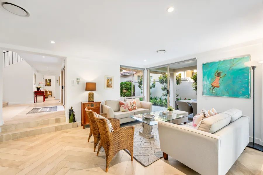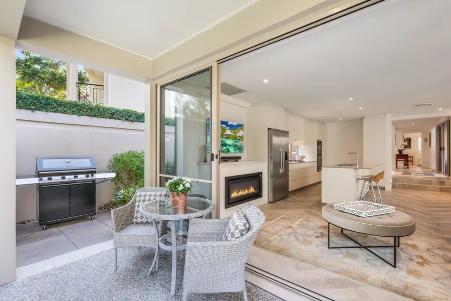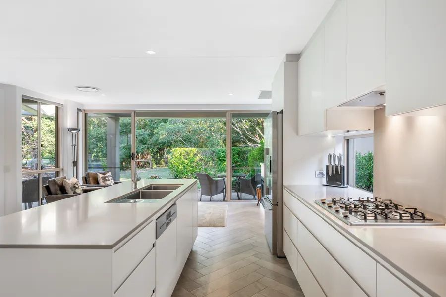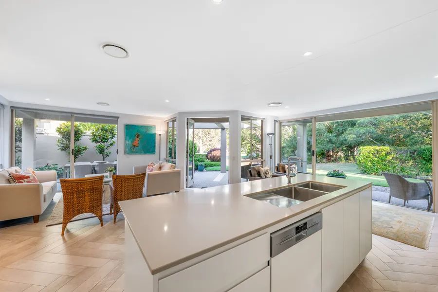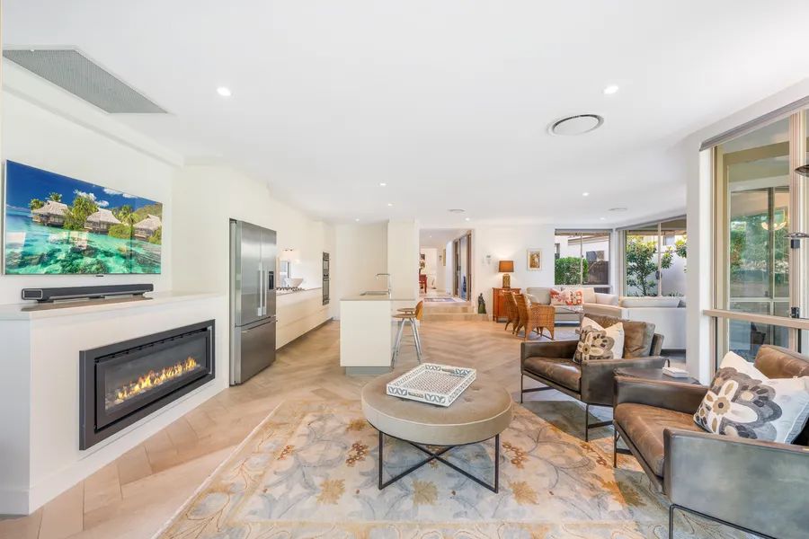 Designed to celebrate its prized setting, the residence offers light-filled interiors and flowing living zones that draw the outdoors in. Expansive glazing and wide sliding doors open effortlessly to covered alfresco entertaining spaces — the perfect haven for relaxed long lunches, sunset drinks or simply watching golfers trace their way along the fairway below.