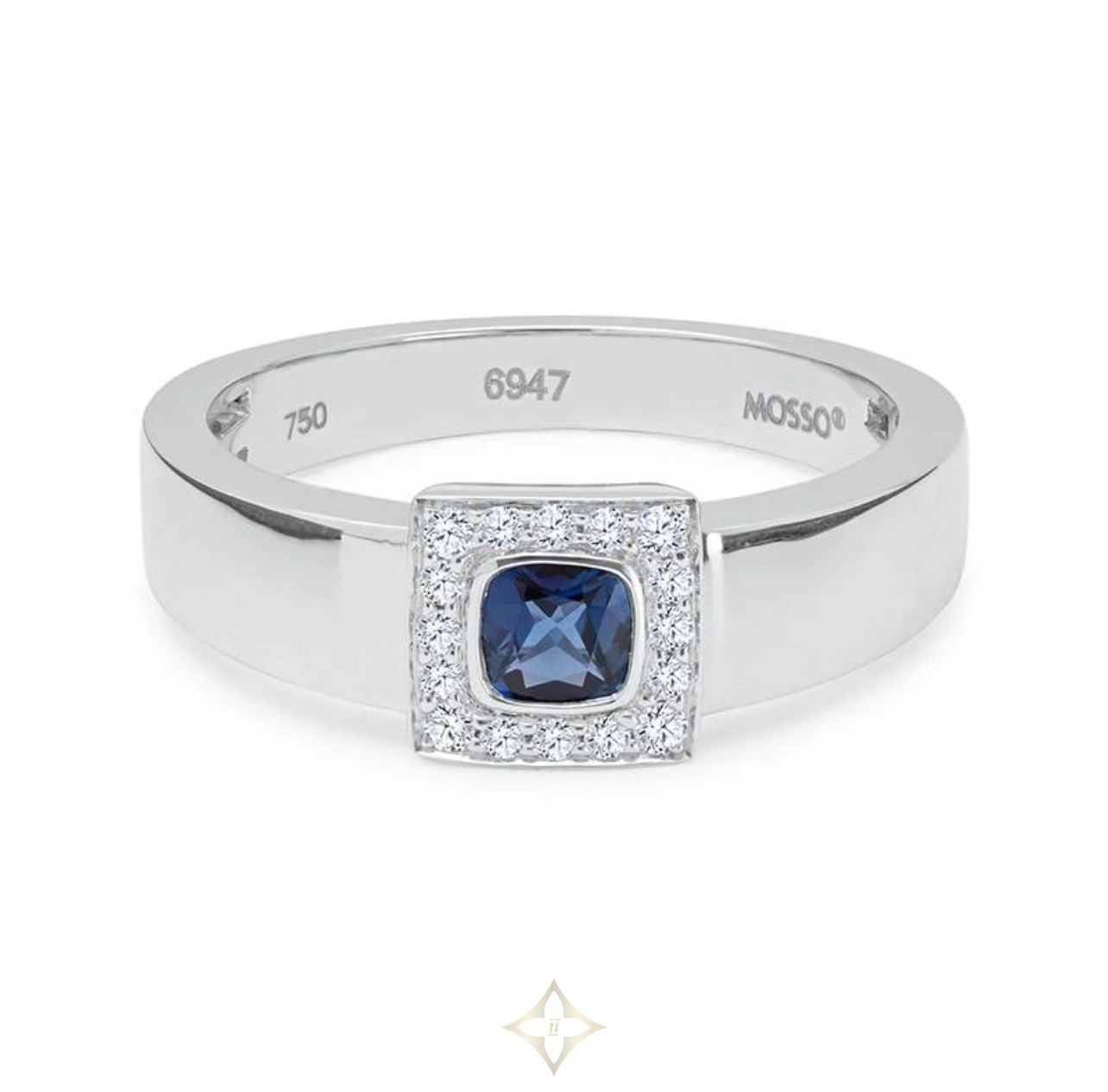 Total stone weight: diamond 0.11, sapphire 0.31 ct.