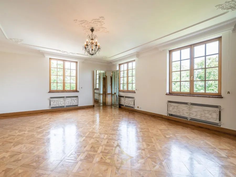 Completely renovated by 3ème Bureau, it offers a gross floor area of approx. 1,300 m². The house opens onto a ceremonial entrance hall with mezzanine. The ground floor features a vast panelled lounge, a VIP dining room and a smaller private dining room, a sitting room, a ‘La Cornue’ professional kitchen and a study. Upstairs is the master suite with bedroom, bathroom and dressing room, and 5 other suites, each with bedroom and private bathroom. A caretaker’s lodge with a lounge, two bedrooms and a bathroom completes the complex. The basement includes numerous cellars, a wine cellar, a multi-purpose room and a double garage.