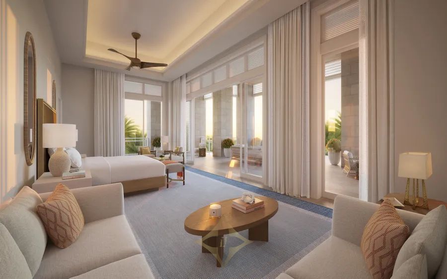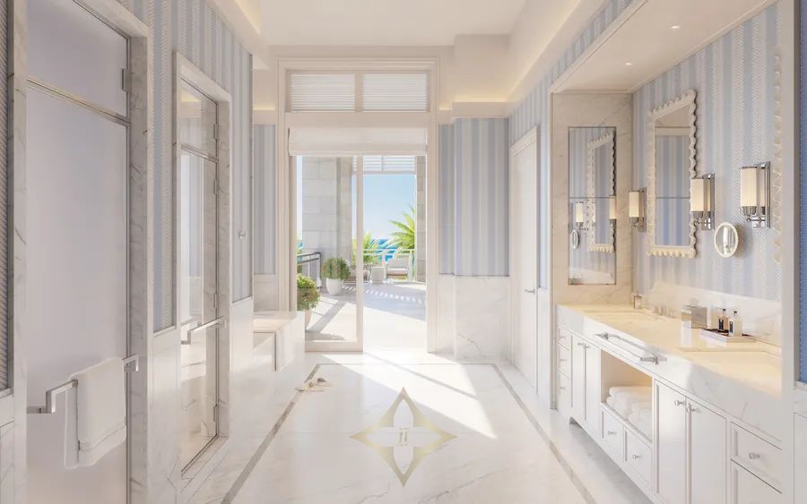 The Beach Villas located directly on the oceanfront feature 7,459 sf of interior living space with 13-15 ft ceilings in major areas and 6,604 sf of outdoor living terrace, including a private plunge pool. The large open floor plan great rooms include a wet bar, formal dining rooms, family rooms and dens/offices. In the gourmet kitchen are premium fixtures, cabinetry, fittings and butler’s pantries.