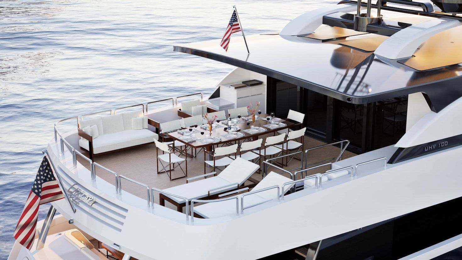 The fuel-efficient Lazzara UHV 100 set to be launched in 2026 is an outstanding 100-foot (30.5m) motor yacht offering the largest gross tonnage of any yacht in her class. Designed for comfort, this impressive member of the UHV 100 model range features huge deck space ideal for entertaining.