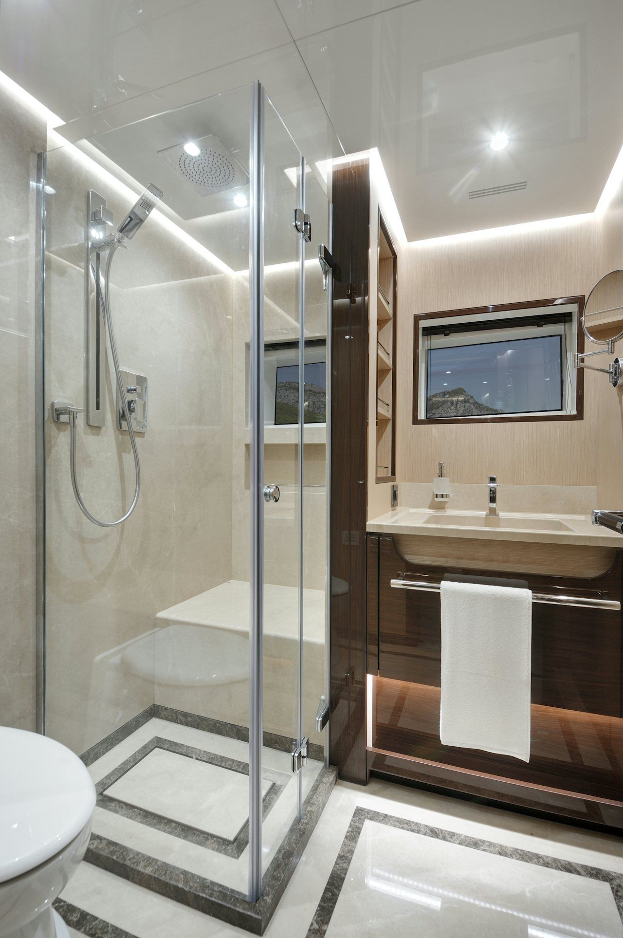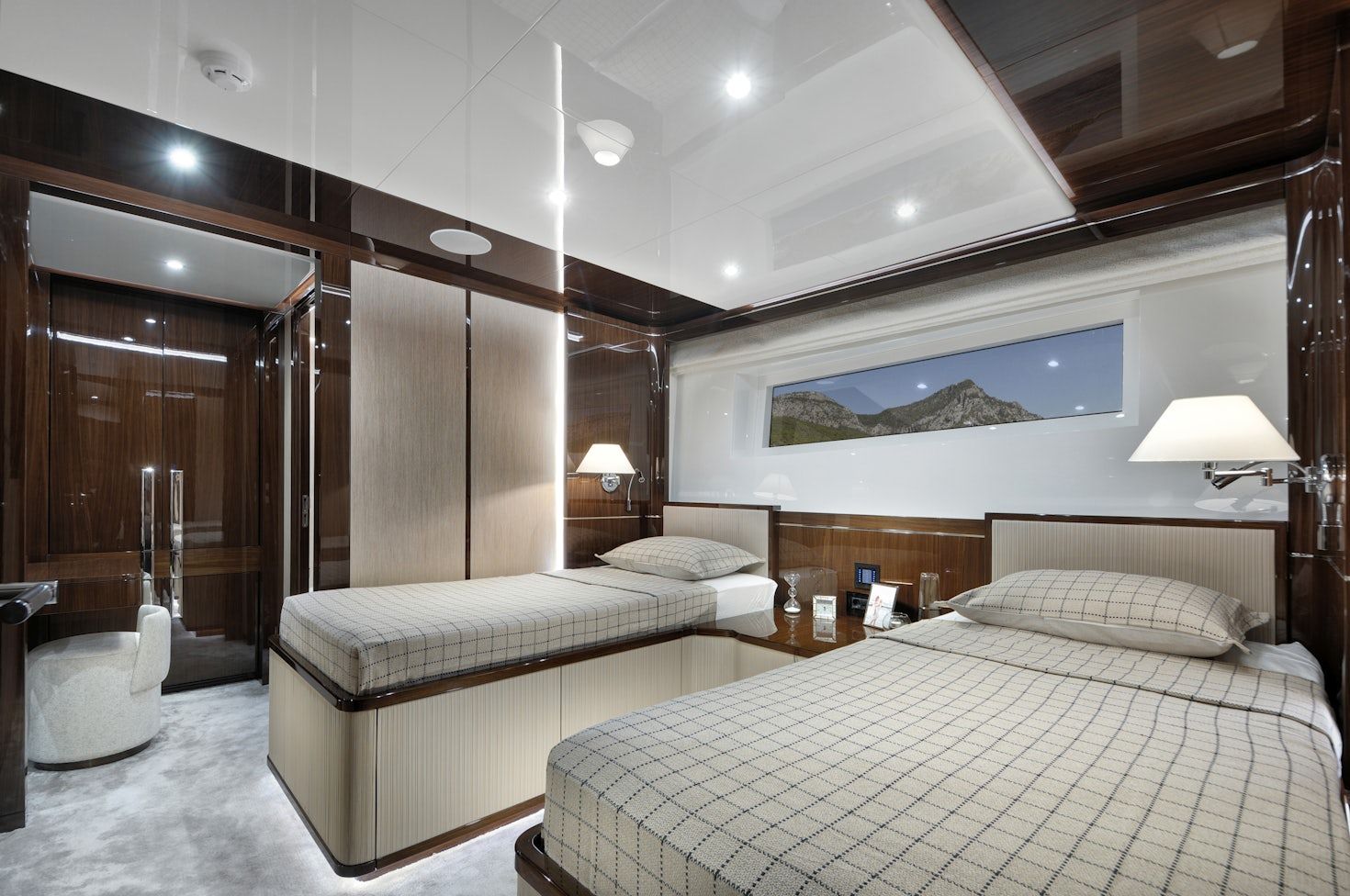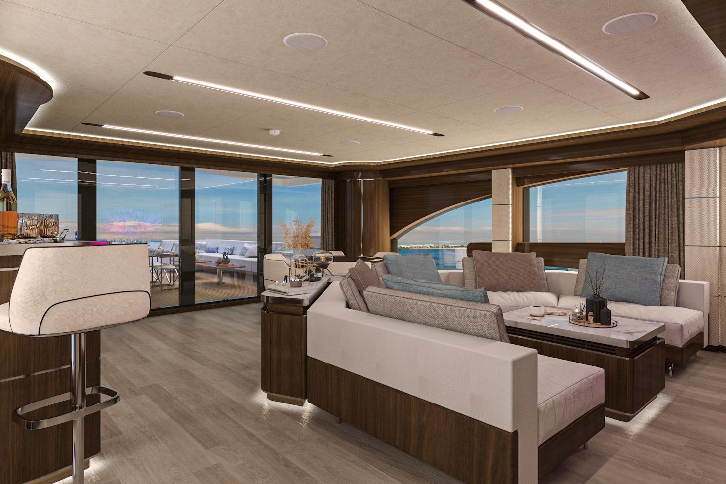 The interior spaces of Lazzara UHV 100 are warm and welcoming. Her interior design and impressive floor-to-ceiling windows create a home away from home on the water. Five guest staterooms and owners’ stateroom are located on the main deck.