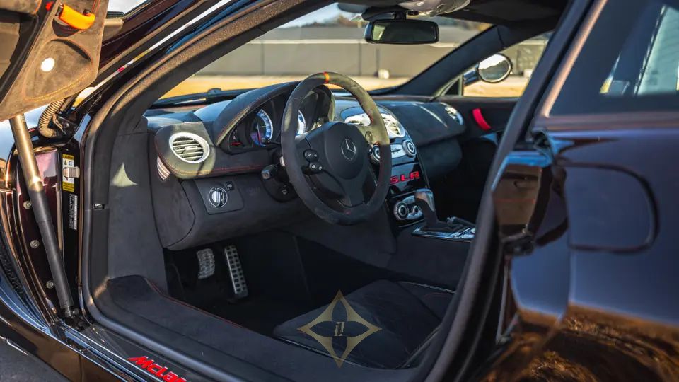 An original Japanese-market SLR, this example was delivered new to its first owner in Tokyo in September of 2005 according to the accompanying service book. Acquired by the current owner in 2017, it was then decided that the car would be sent back to McLaren to receive the ‘McLaren Edition’ upgrades. This particular car also received 722 S-specification wheels and tinted lights, alongside a full interior retrim in black alcantara with red stitching and “MSO” lettering in the headrests as well as a new alcantara steering wheel. Most exceptional is the car’s paintwork, a rich metallic red that almost appears black in some light, making for a very dynamic and menacing appearance. Work was completed in 2019 and the car was returned to Japan, where it has resided ever since. Since completion of the work by MSO, the car has been driven approximately 1,200 km.