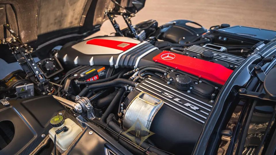 Thanks to a new carbon-Kevlar front floor, 722 GT race car-style front wheel arch vents, a new rear diffuser, and a larger air brake, downforce was increased by 15 percent over the SLR 722 Edition. One artistic touch was restyled intakes above the exhausts and on the front bumper, which were shaped to resemble the McLaren logo. The engine was left unchanged, but McLaren opted to fit a lighter ceramic-coated exhaust system to enhance the car’s already impressive exhaust note.