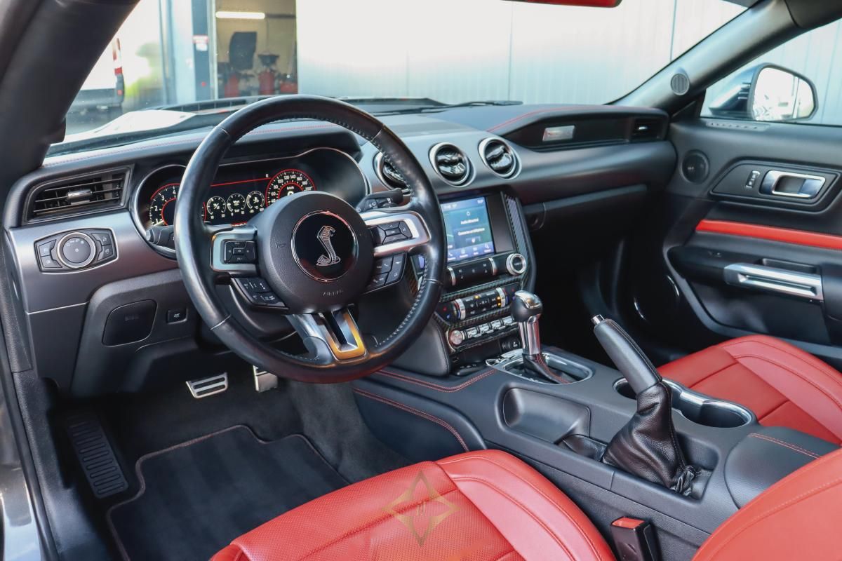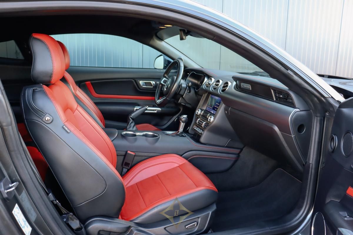4-seater coupe Ford Mustang GT 5.0 V8 BVA10 power 450hp automatic transmission 10-speed with paddles on the steering wheel, different driving modes of driving / rain / normal / sport+ / circuit / dragster, Ford Sport Performance exhaust line with valve for sound + steering wheel hardness adjustment, Magneride controlled sport suspensions,
