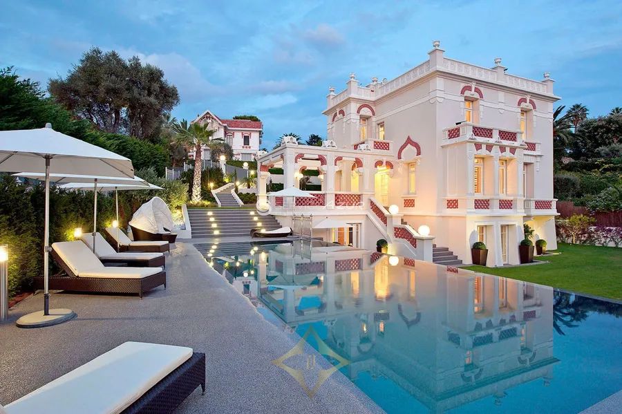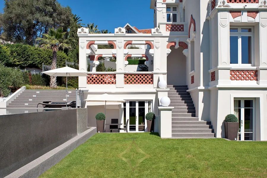Located in the esteemed Cap d’Antibes, this Belle Époque villa, meticulously renovated, offers both historical charm and contemporary elegance. Spanning 420 sqm, it features a spacious living area with a fireplace, accentuated by high ceilings and panoramic sea views. The kitchen, a work of art designed by Nicholas Anthony of Knightsbridge, integrates advanced technology with a dining area, transforming effortlessly at the touch of a button. The villa consists of five luxuriously appointed bedrooms, each accompanied by en-suite bathrooms, with four grand master suites providing an unparalleled level of comfort. An entire floor is reserved for hosting, offering complete privacy and luxury. Set on a 1,308 sqm plot, the property includes a 15-metre infinity pool surrounded by a verdant garden with fruit trees. Additional amenities include two enclosed garages and a separate apartment, perfect for guests or staff. Located just minutes from the iconic Hôtel du Cap Eden-Roc and the sandy shores of Juan-les-Pins, this villa represents a rare blend of traditional architecture and modern living.
