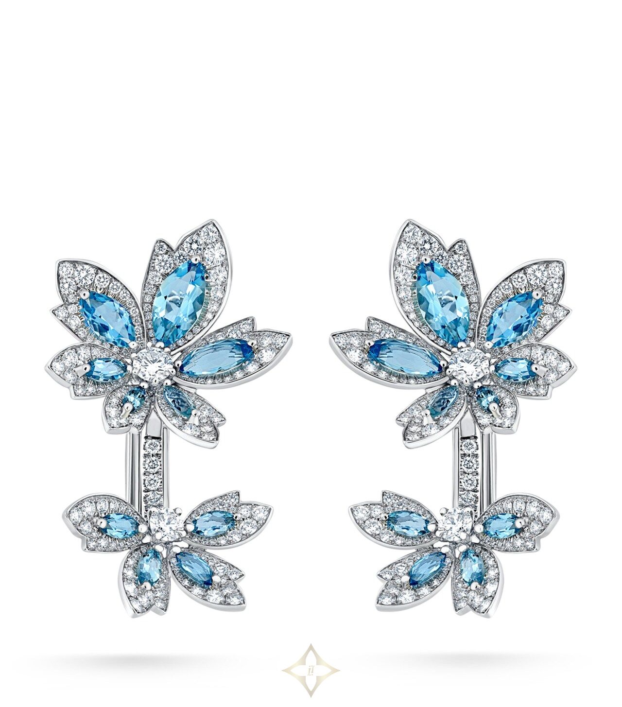 DAVID MORRIS White Gold, Diamond and Aquamarine Palm Flower Earrings | London 🇬🇧