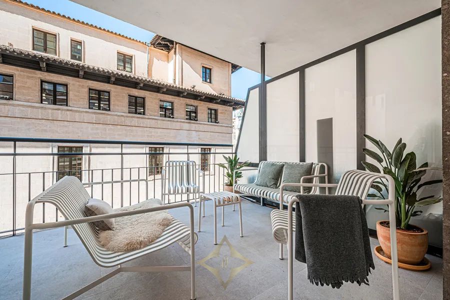 Nestled in the heart of Palma’s Ciutat Antigua, just steps from the prestigious Paseo del Borne and the iconic Cathedral, this exquisitely renovated four-bedroom apartment offers an elegant blend of historic charm and modern sophistication. Spanning 258 m², this spacious residence has been meticulously designed to provide a refined urban lifestyle. Large windows fill the interiors with natural light, while the 16 m² private terrace offers a tranquil outdoor retreat with a west-facing orientation.
