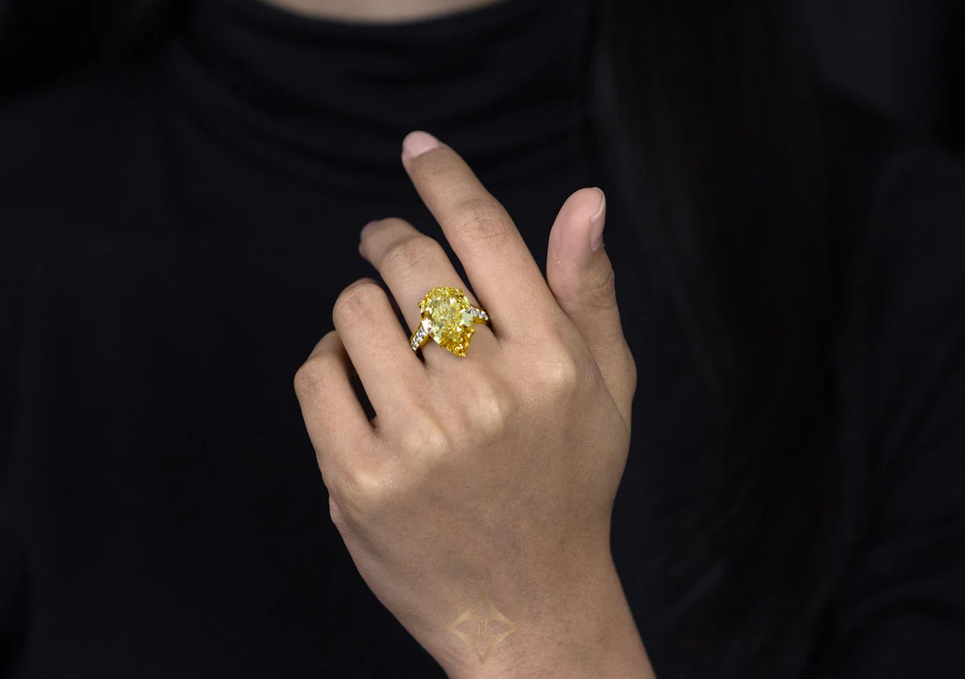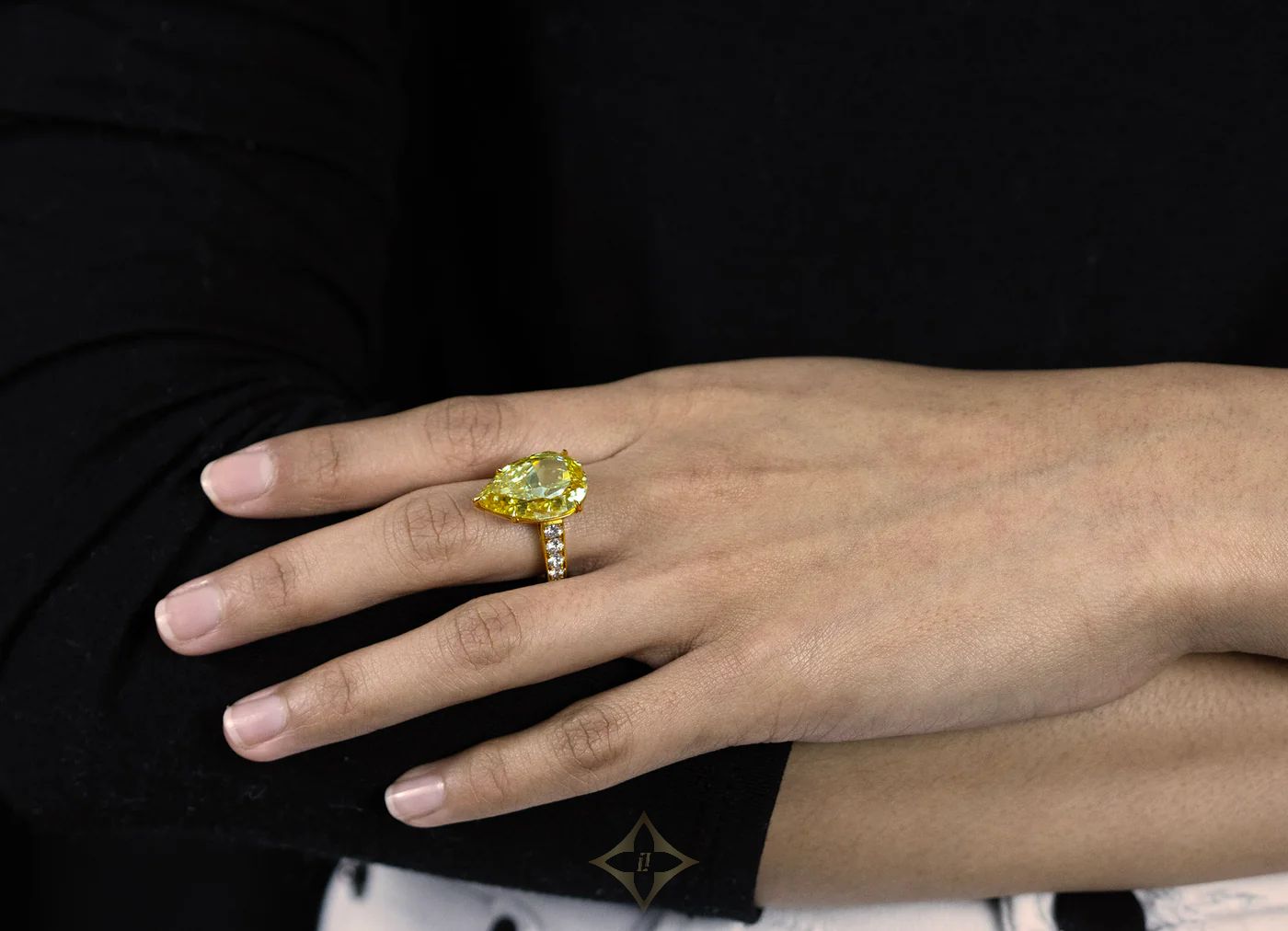 GIA Certified 10.06 Carats Pear Shape Yellow Diamond Engagement Ring in Yellow Gold