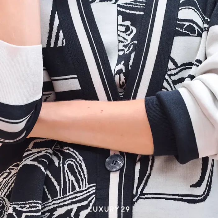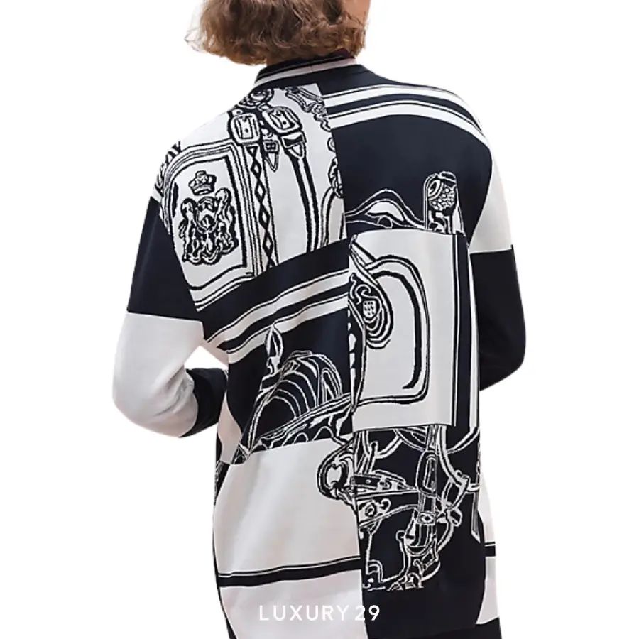 HERMES "EN DESORDRE FINESSE" LONG-SLEEVE GOLF CARDIGAN BLEU NOIR | Bangkok 🇹🇭