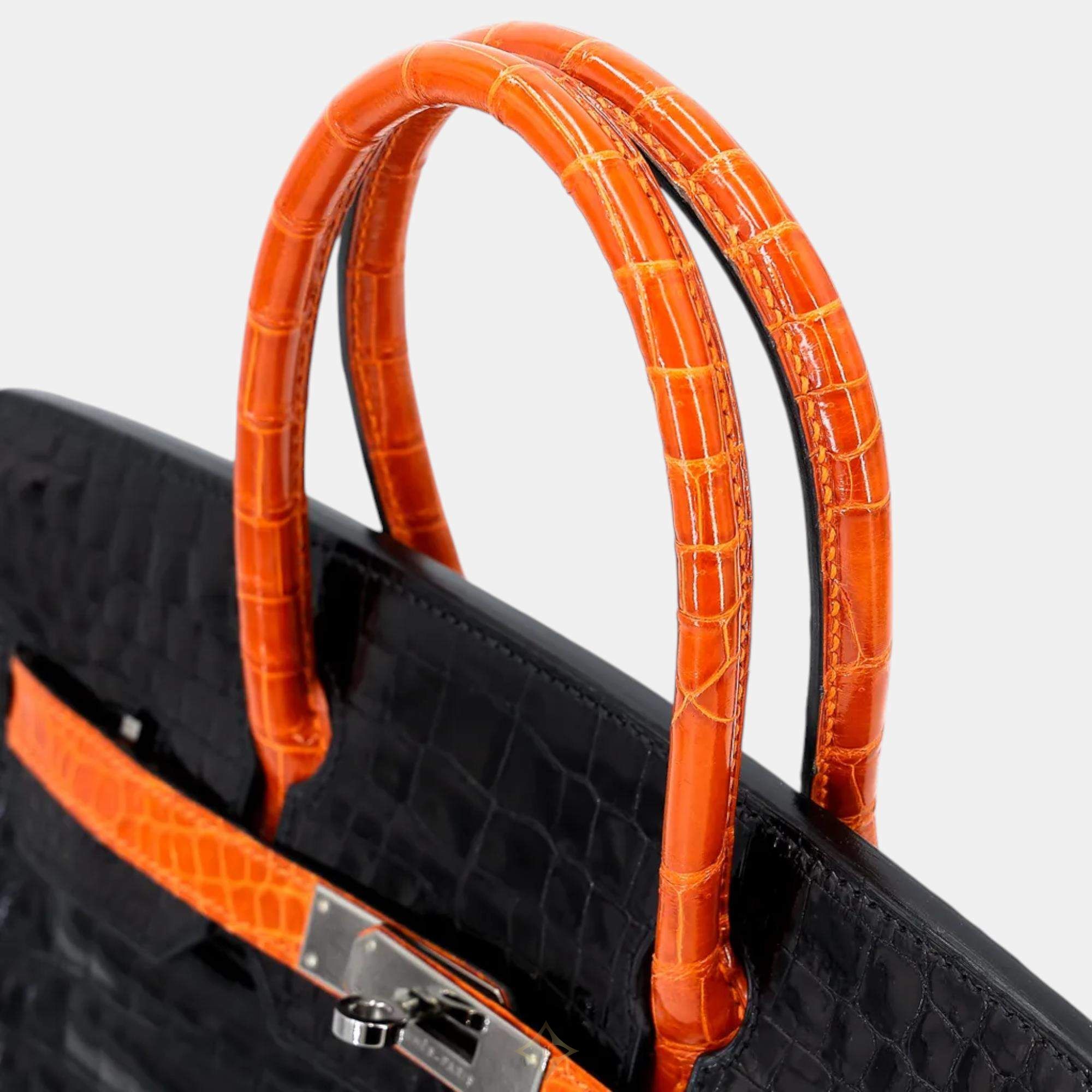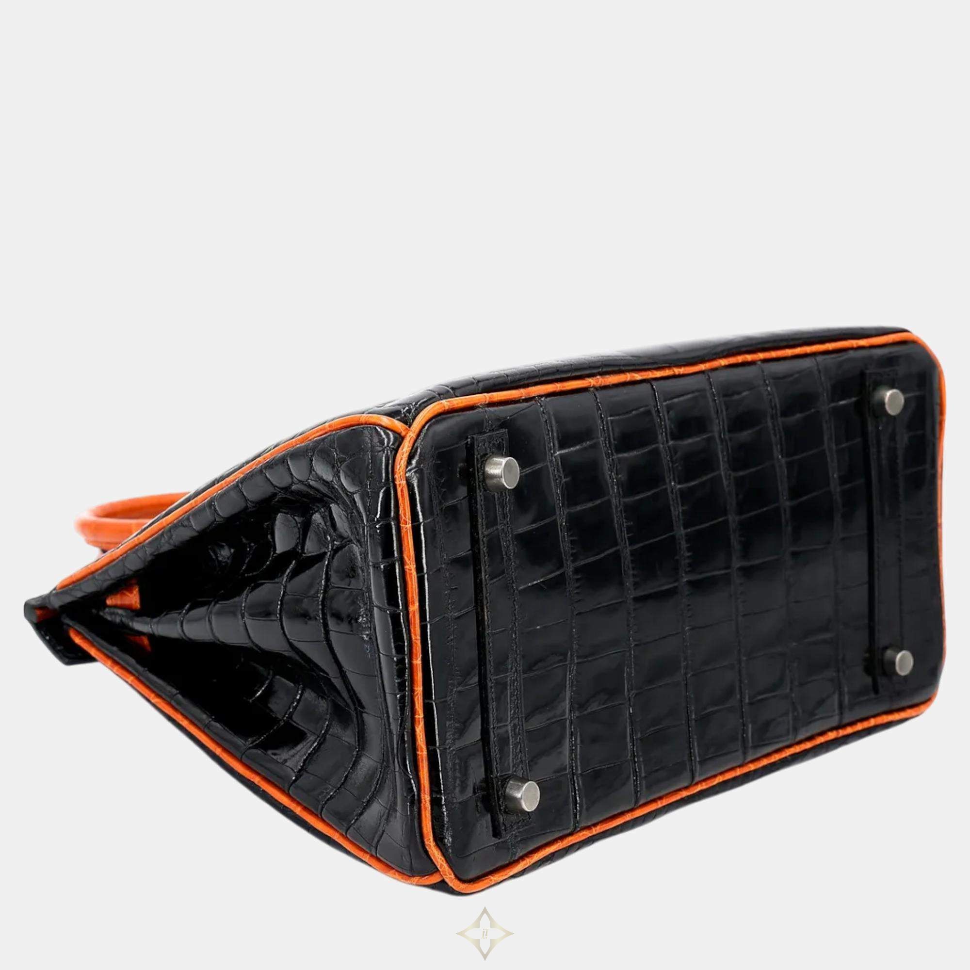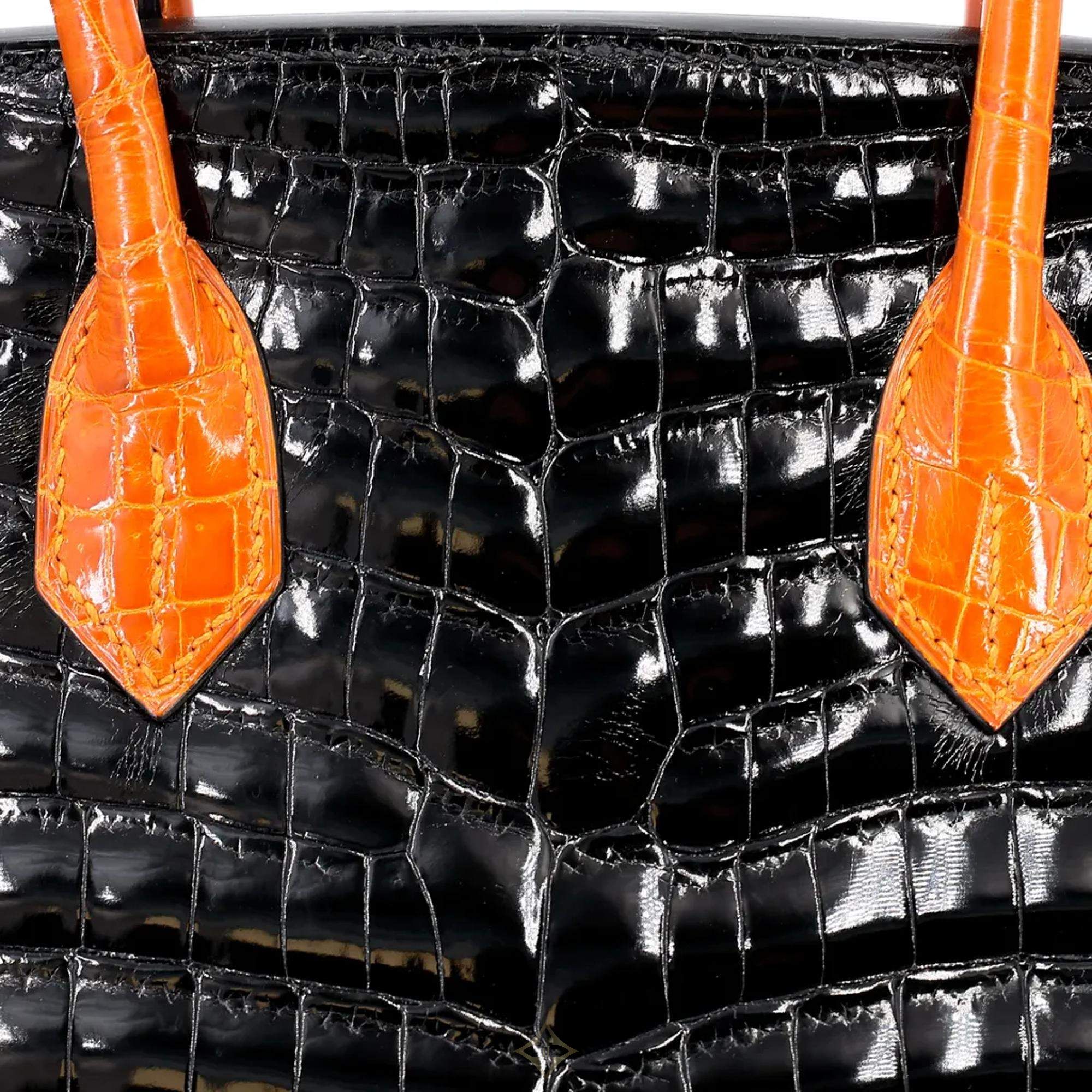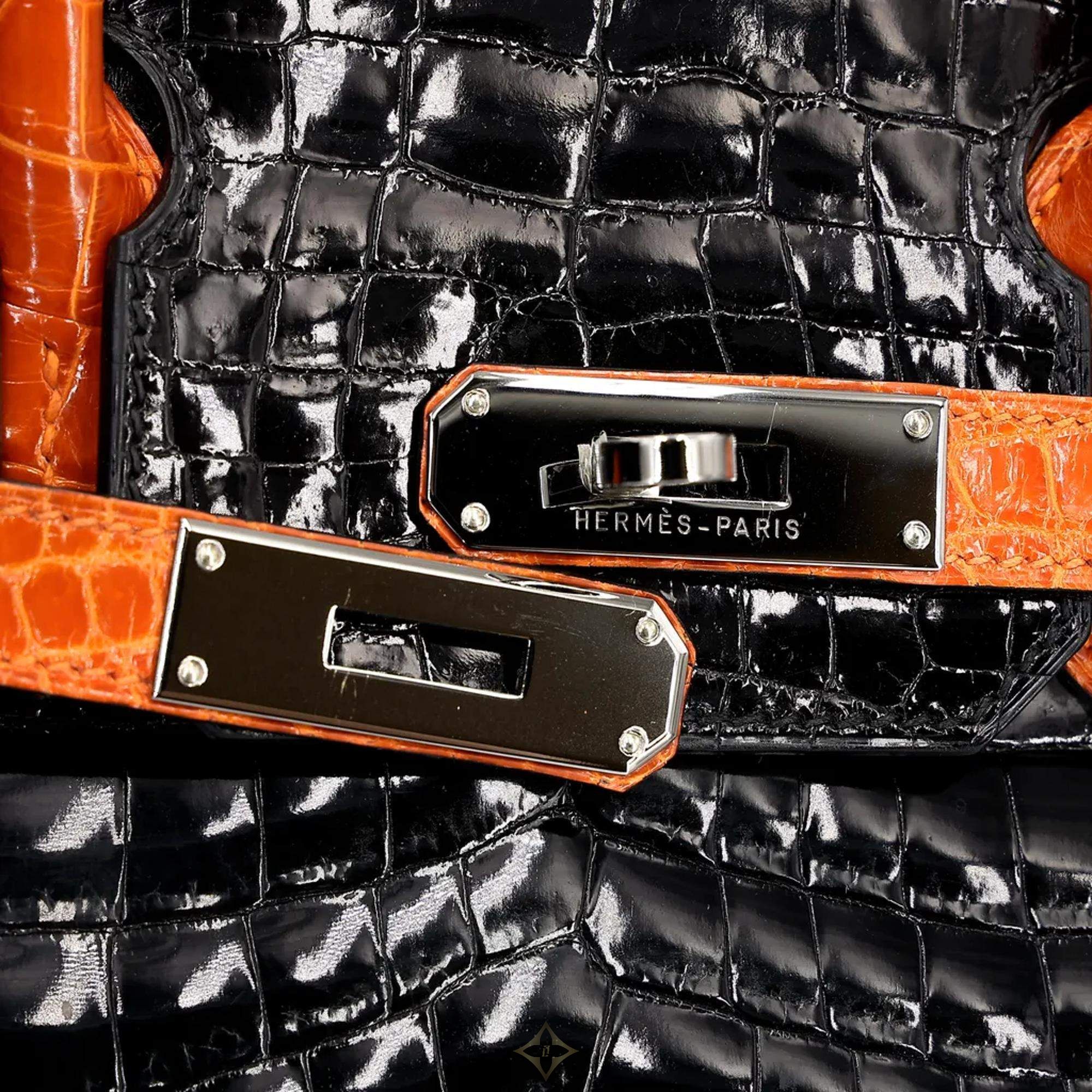 Hermes Orange and Black Niloticus Crocodile Leather Birkin 30