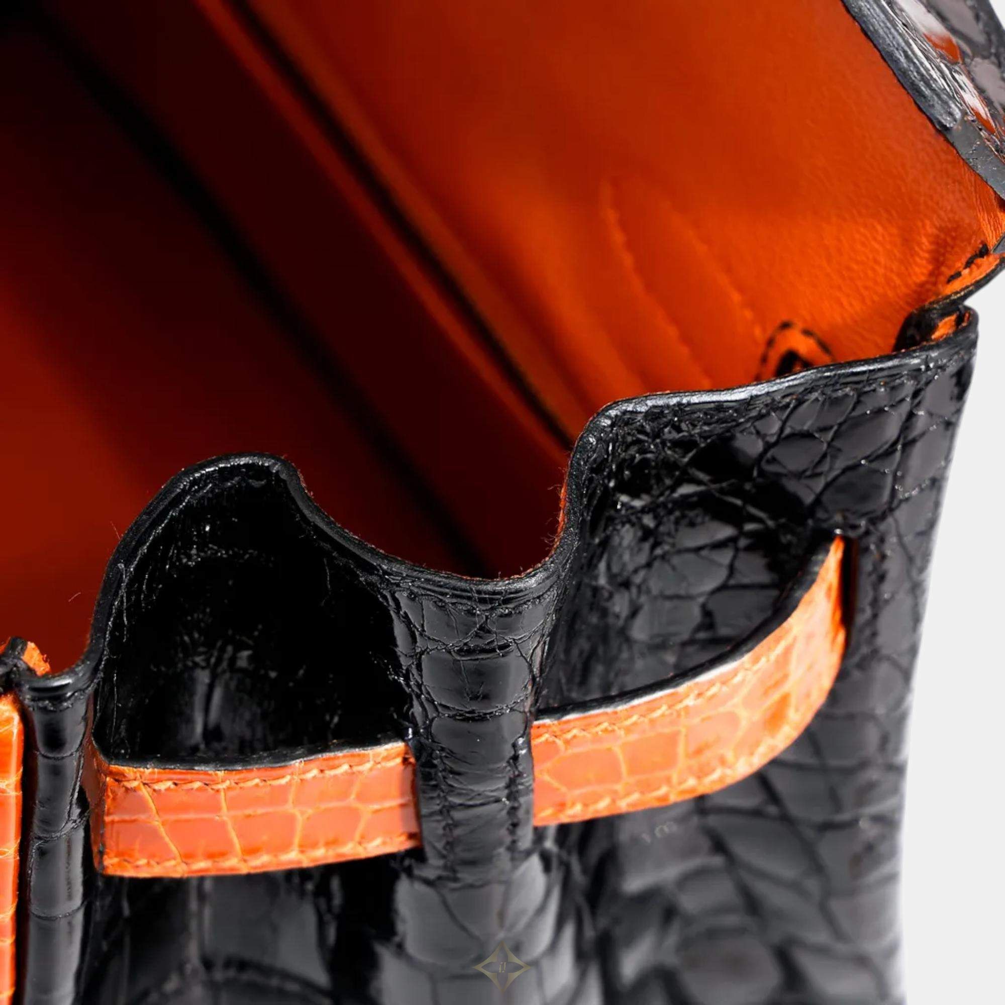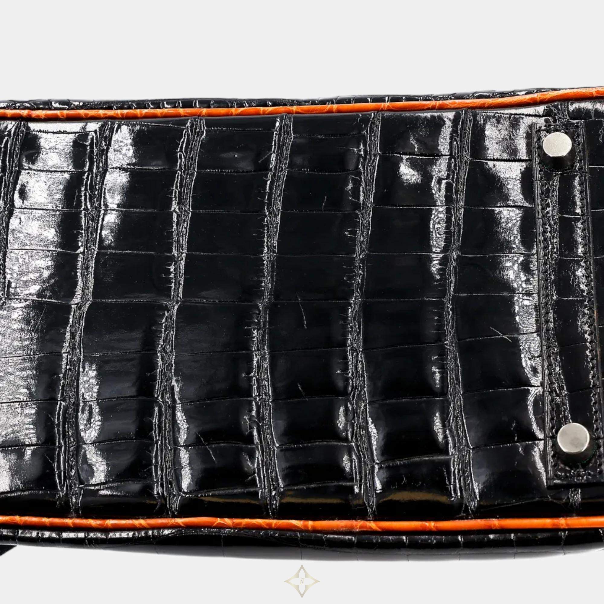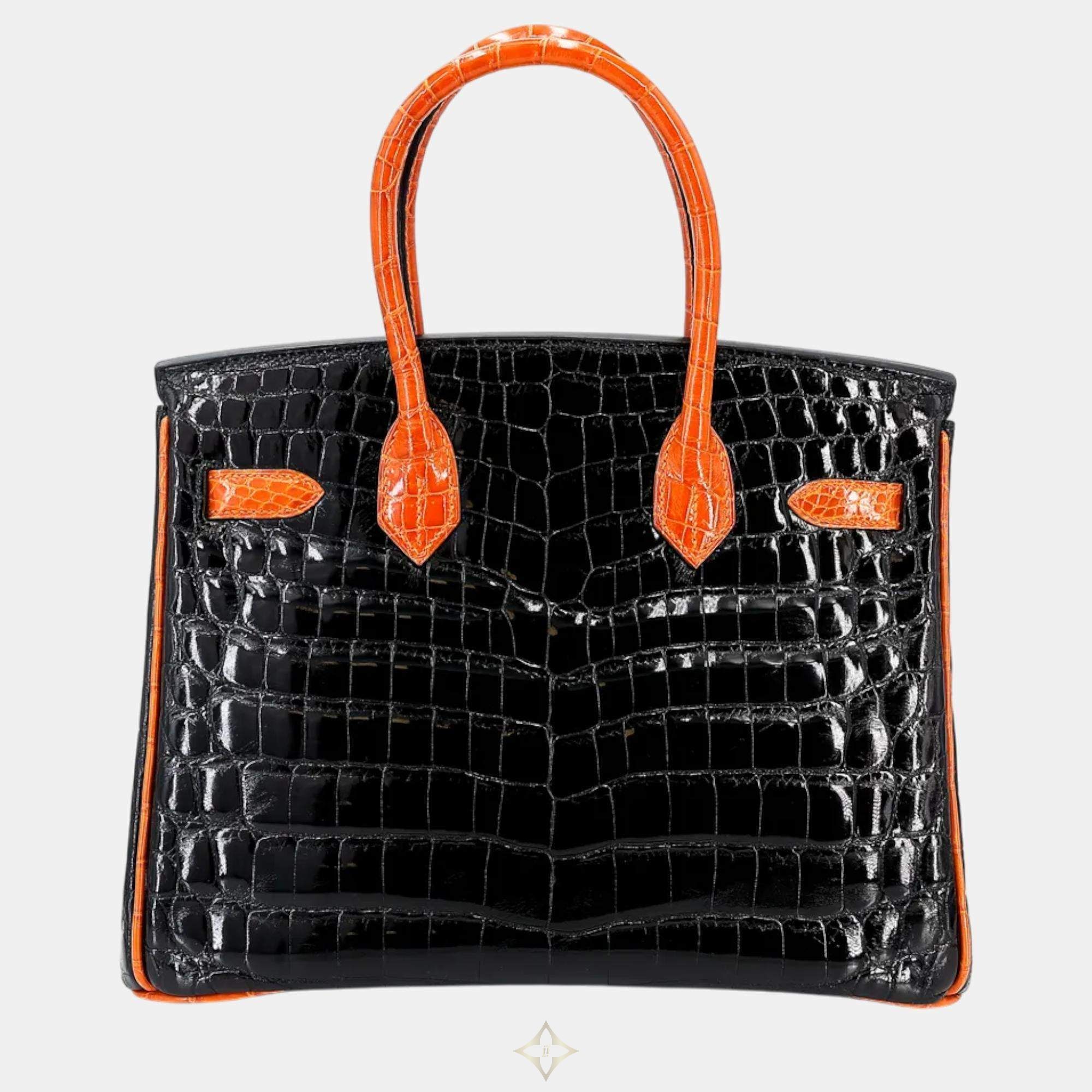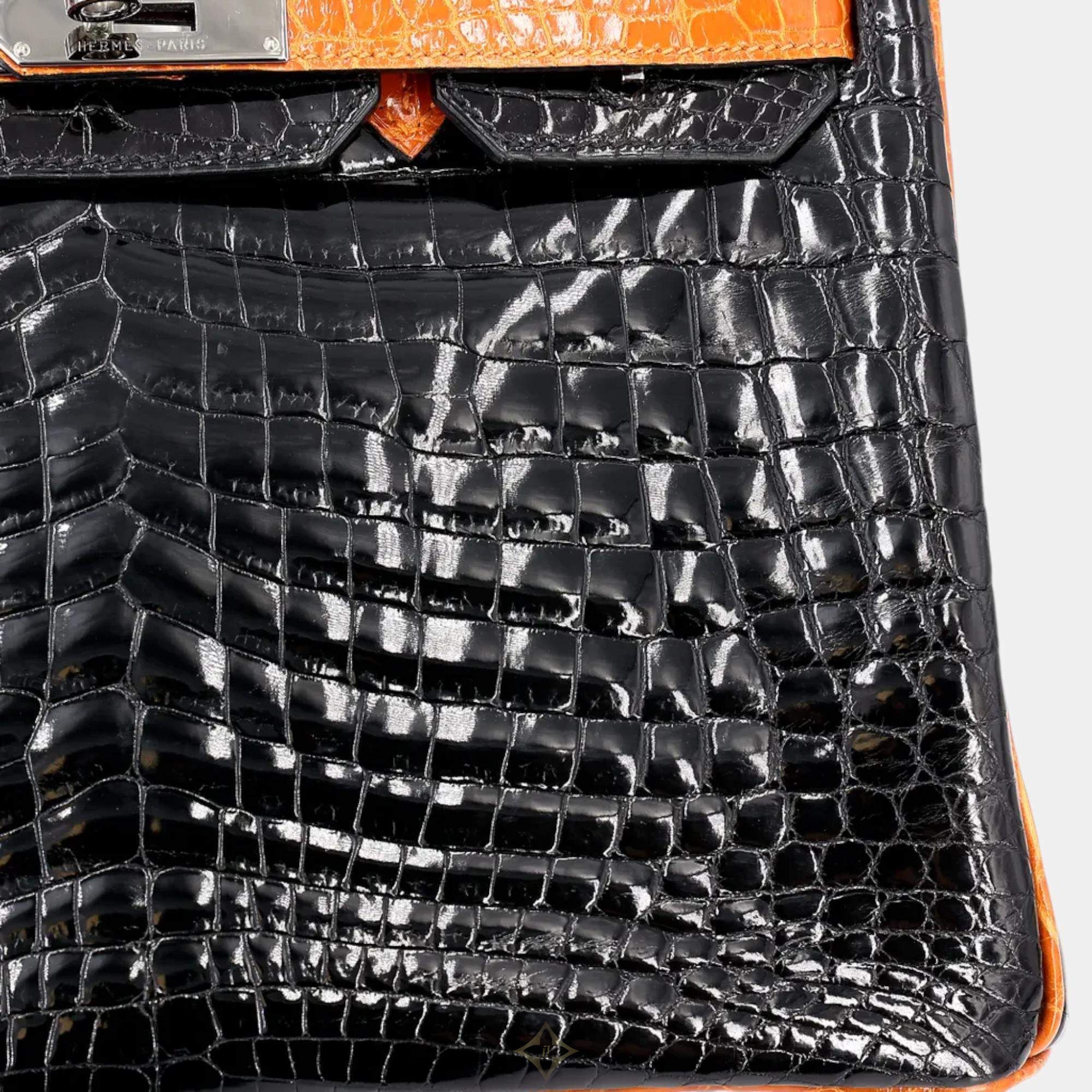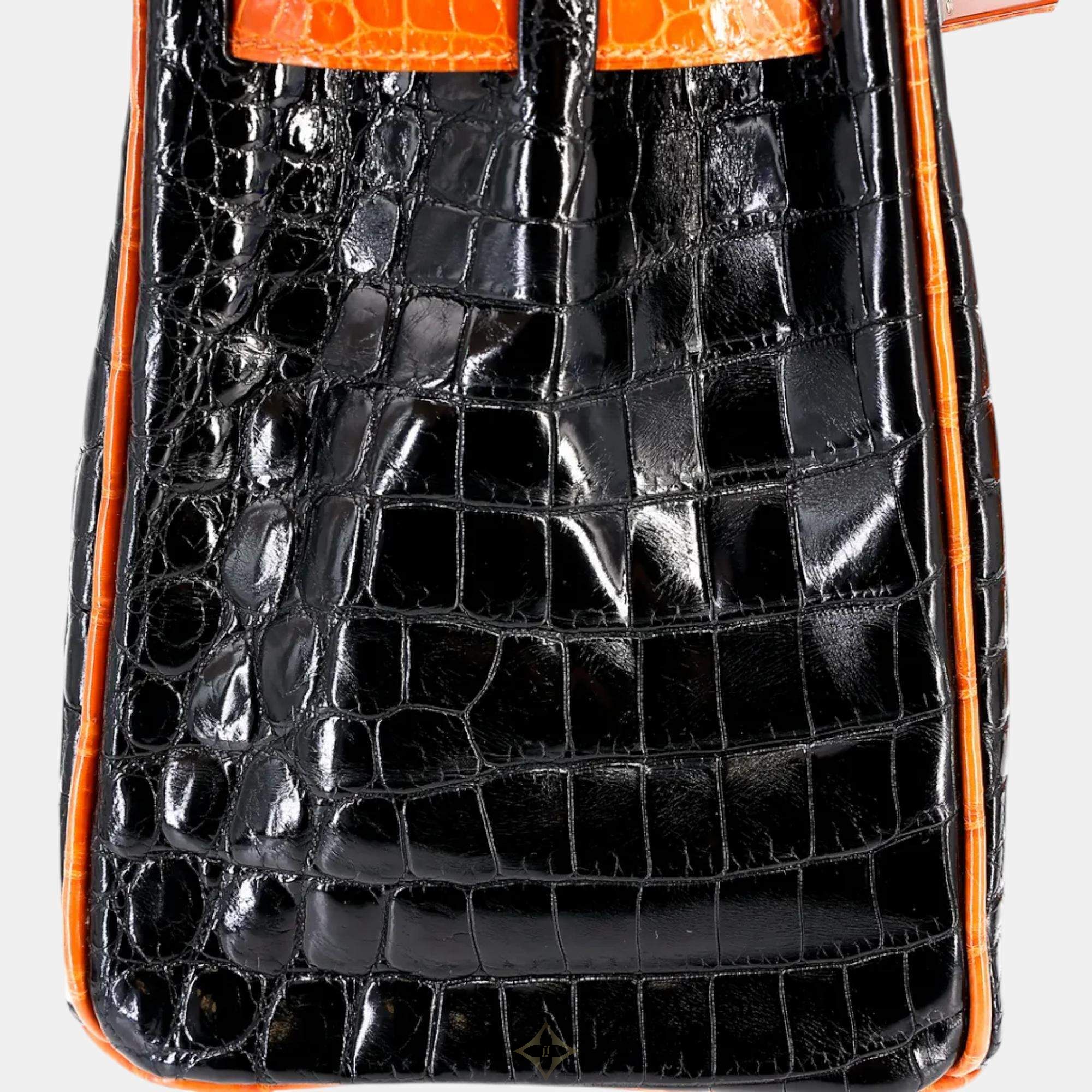 Hermes Orange and Black Niloticus Crocodile Leather Birkin 30