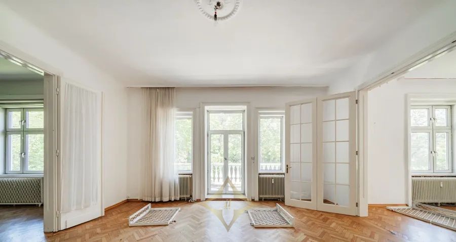 The property is sold in its current condition, as visible in the pictures and plans. There is already a development study for possible expansion, which envisions an extension of the living area to 757 m² and open spaces totaling 247 m². Both the attic will be expanded, and an extension will be realized. The focus is on creating open and modern spaces and merging indoor and outdoor areas with the help of large window fronts. The stylish street-facing facade is to be preserved. This will create a unique living dream that perfectly combines modernity with historic charm. Upon request, you will receive the detailed design concept of the study for review.