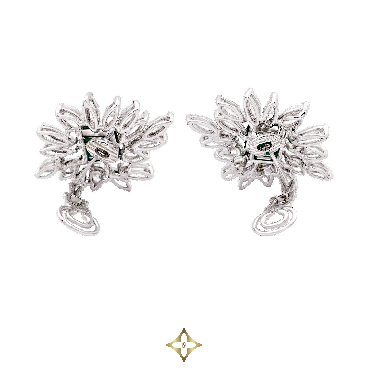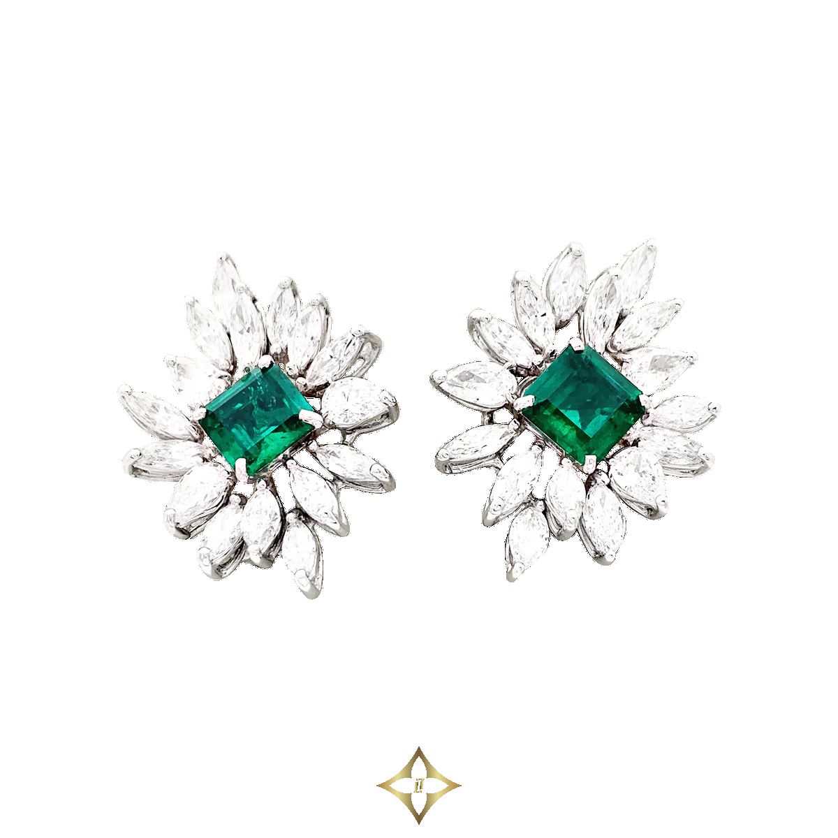 EARRINGS SALE PRICE: 57.000,00 € SKU: 34497 A pair of 750/000 white gold ear clips, each adorned with a quadrangular faceted emerald weighing 5.60 carats in total, the surround set with 6 carats of navette or pear-cut diamonds of various sizes depicting foliage. Emerald dimensions: 8.88 x 8.96 x 4.43 mm and 9.04 x 9.09 x 4.95 mm Emeralds accompanied by a CISGEM certificate attesting: origin Colombia, minor oil. (Removable stems that can fit pierced and non-pierced ears) Brand Non signé Accessories Certificat de laboratoire Category Nouveautés Weight 20.3 g Materials Émeraude Diamants Or blanc Weight of gold 20.3 g Carat of gold 18.0 Fineness 750 Length 35.0 Width 25.0 Bijoux Miller 233 Rue Saint-Honoré, 75001 Paris, France Phone: +33 01 42 61 63 13 WhatsApp: +33 7 69 58 85 80 Email: contact@miller.fr