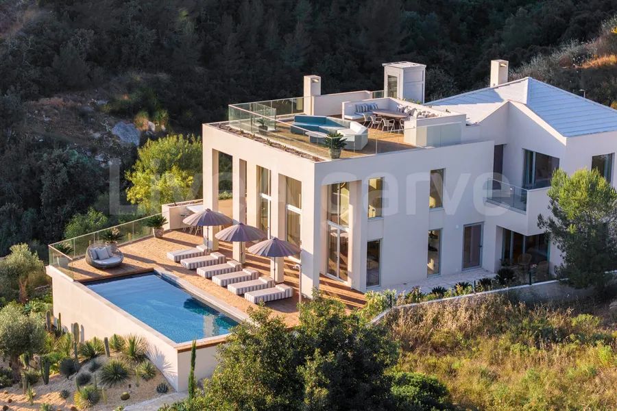 Lounge area with an outdoor kitchen and stunning 360-degree views of the Sea and hills.