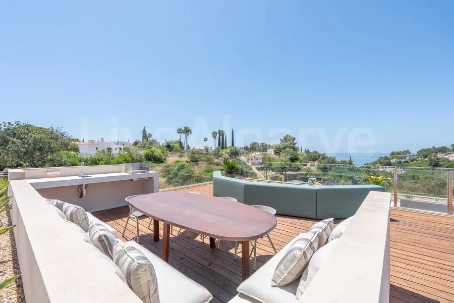 Our LiveAlgarve Realty Team welcomes you to a fantastic ocean-view home at the prestigious Quinta do Paraiso at Vale Currais, Carvoeiro. Nestled in a quiet cul-de-sac, this architect-designed 3-floor Villa boasts breathtaking sea and country vistas.