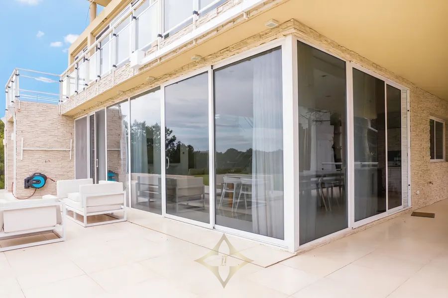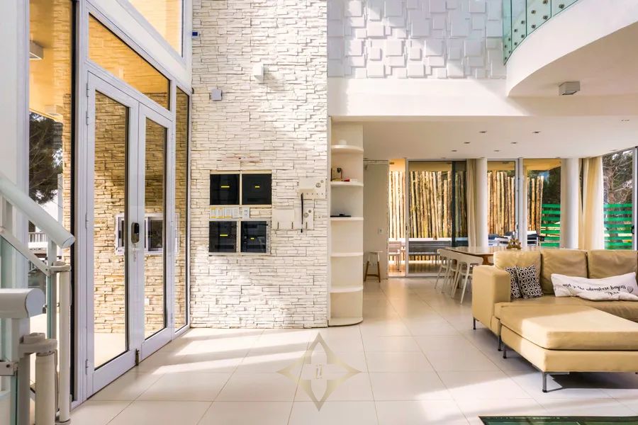 Design: Stone + modern lines, large windows, elegant and durable finishes.
