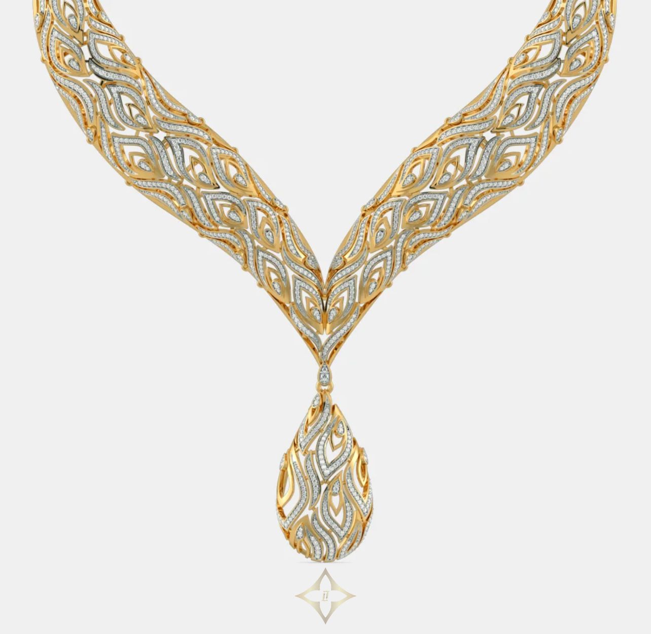 The Pride Necklace From The Pride Collection Diamond Necklace In 18Kt Yellow Gold (91.15 gram) with Diamonds (5.696 Ct) Gold & KT : 18KT | Yellow Gold | 91.15 Gram Diamond : SI IJ5.696 CT PRICE: ₹ 16,52,162 Product Details Gold Weight 18kt Yellow Gold | 91.15 Gram Diamond Weight 1003 SIIJ Diamonds | 5.696 Ct Product Weight 92.29 Gram Product Dimension Height 130.0 mm Width 162.0 mm Length 16 inches Manufacturer: BlueStone Jewellery and Lifestyle Limited 302, Dhantak Plaza, Makwana Road, Marol, Mumbai-59 Country of Origin: India ——— BlueStone (BlueStone Jewellery and Lifestyle Pvt Ltd) Phone: +91 1800 419 0066 Email: cs@bluestone.com STORES * Pacific Mall Shop No. FF-03, First Floor, Pacific Mall, Najafgarh Road, Tagore Garden, Khayala, New Delhi, 110018 Phone: +91 9354164064 * Inorbit Mall BlueStone Inorbit Mall,G-31A,Link Road Malad West, Mumbai, 400064 Phone: +91 8928407877