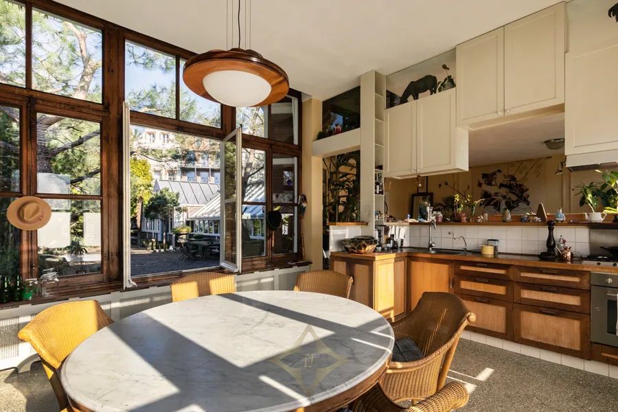 Apollobuurt | North Holland | Netherlands PRICE: $12,166,930 Unique 19th Century Orangery Of 322 M² With A Tropical Garden And 69 M² Garden House. 6 Beds | 4 Baths | 391 Sqm Hidden away on the edge of Vondelpark you will find this one-of-a-kind and highly prestigious former 19th century monumental orangery of 322 m2, boasting a tropical garden and a spacious, habitable garden house of 69 m2. The chalet-style orangery and former workshop of sculptor John Rädecker consists of a timber frame construction with wood and brick and has an eye-catching design because of the windows, the projecting wooden rooflines and decorations. An orangery is a building in which plants are stored that cannot withstand the cold during the winter and therefore, the main building has formerly been used as a orangery. A breathtaking number of windows extend to the end of the garden. The property comprises the main building and the garden house. The main building, measuring 322 m2, is spread over 3 floors, features 5 bedrooms and 3 bathrooms, and has a ground floor ceiling height of nearly 4 meters. Some remarkable features of this house are the wooden beams, the large number of windows, and the classic spiral staircase. The tropical look & feel of the garden (approx. 850 m2) is experienced inside as well and gives the house a warm atmosphere. The garden house is built in the same style as the orangery, with the same decorated roofline finishings. The highly unique conservatory provides access to the garden house, which features a bedroom with bathroom and a kitchen. The ceiling height here is almost 3.5 meters. The exceptionally green and lush garden is a delight to look at and is located in the middle of the premises. Many plant species from all over the world are in full bloom here in summer. Furthermore, there is a separate car entrance. FEATURES: •Total residential area of approx. 391 m2, consisting of main building of approx. 322 m2 and garden house approx. 69 m2 (in accordance with NEN2580); •Tropical garden surrounding the property of approx. 850 m2 (in accordance with NEN2580); •6 bedrooms, 4 bathrooms; •Former orangery and sculpture workshop of John Rädecker (of the Dam Square monument, among othersr); •Timber frame construction; •Built around 1890; •National monument; •Located on leasehold land, perpetual leasehold is requested; •Delivery in consultation. ——— DSTRCT Real Estate Email: Info@dstrct.com