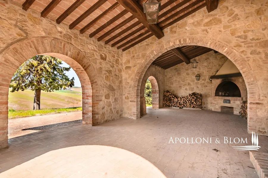 Organic Winery boasting an historical farmstead, 31 hectares of vineyards, cellar and olive groves for sale in Montepulciano, Siena. This breathtaking estate offers an extraordinary opportunity to acquire a turnkey organic winery, with expansive vineyards, state-of-the-art winemaking facilities, and historical farmhouses. Located in one of Tuscany’s most iconic wine regions, Montepulciano, it combines tradition, modernity, and natural beauty—an idyllic setting for producing world-class wines and olive oil. Nestled in the heart of Tuscany’s prestigious Montepulciano wine region, this exceptional organic winery estate offers an unparalleled opportunity to acquire a fully operational vineyard and winery, complete with charming historic farmhouses. The estate spans 48.5 hectares (119 acres) of stunning Tuscan countryside, with a combination of productive vineyards, olive groves, and arable land. The annual production reaches up to 100.000 bottles of the finest wines. The winery’s production is primarily focused on Vino Nobile di Montepulciano DOCG, a wine steeped in tradition and craftsmanship. In addition, the estate produces a range of other exceptional wines, including Rosso di Montepulciano, as well as the award-winning Super Tuscans. The property includes two beautifully restored stone farmhouses, providing a total of 742 square meters (7,986 sq ft) of residential space, as well as extensive winemaking and ageing facilities covering 1,639 square meters (17,642 sq ft). The estate is in excellent condition, offering the ideal combination of tradition and modernity in a picturesque setting. This unique property offers a rare opportunity to acquire a fully integrated, sustainable wine and olive oil estate in one of Tuscany’s most sought-after regions.