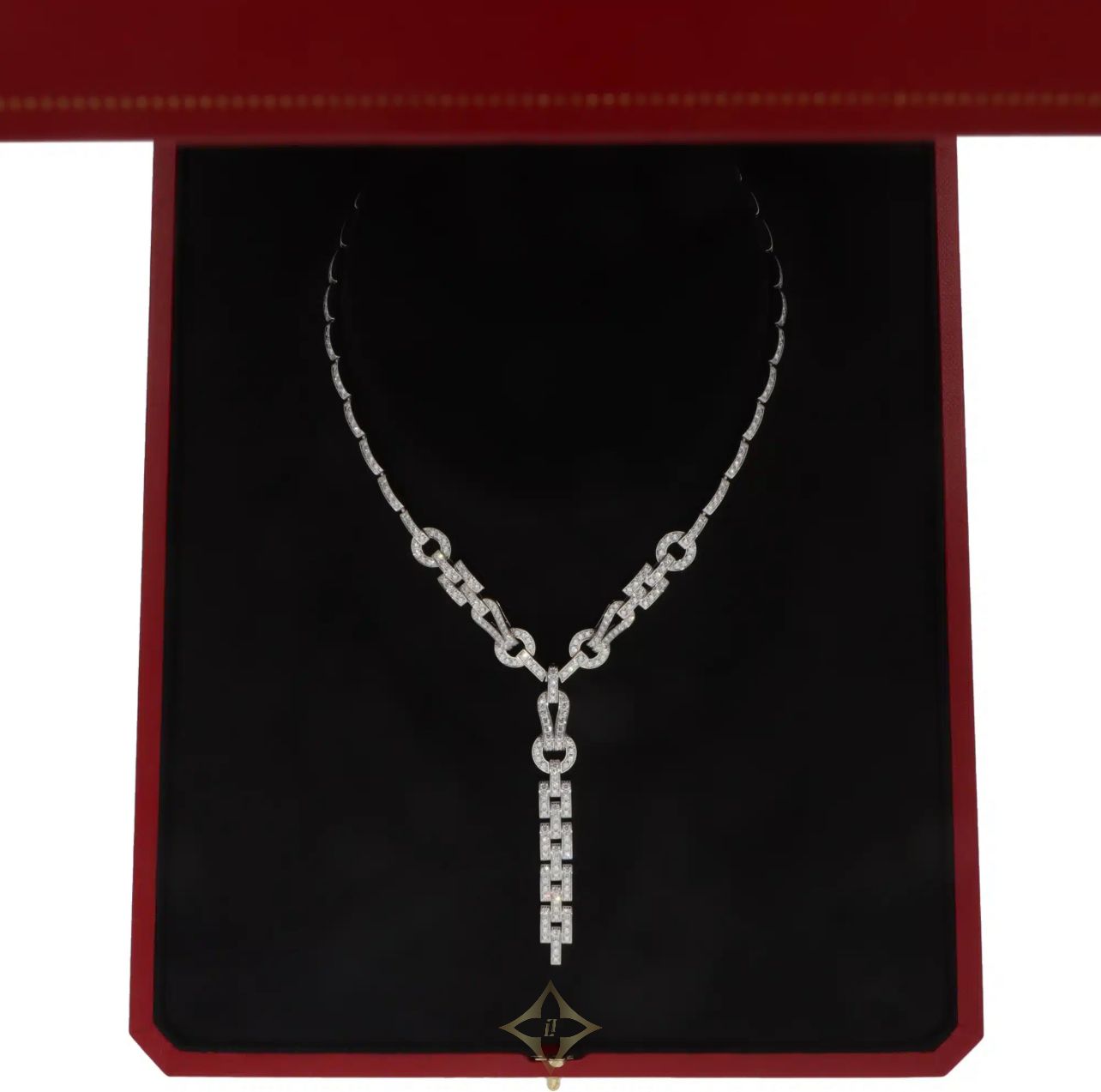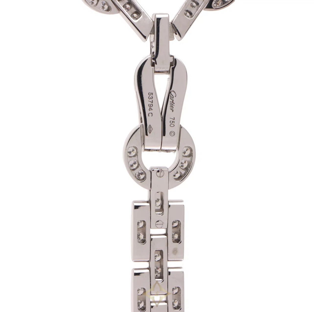 Vintage Cartier Diamond Agrafe Necklace in White Gold Price: £69,500 A beautiful vintage Cartier diamond ‘Agrafe’ necklace set in 18k white gold. The piece is composed of an articulated chain design paved with 320 brilliant-cut diamonds, totalling 6.88 carats which reflect the light elegantly whilst worn on the neck. The necklace is secured with a hinged hook fitting which folds onto a larger gold loop. This hook fitting can either be worn hidden at the back of the neck or round the front as a detachable pendant ‘feature’. The central removable pendant features 83 round-brilliant cut diamonds totalling 1.68carats. The chain measures 42 centimetres in length (16.5 inches) and 0.4 centimetres in thickness. The necklace has a gross weight of 55.7 grams. The necklace is signed and hallmarked Cartier, 750, with the serial number 53794C. These markings can be found on the hook clasp. The necklace is presented in it’s original fitted box which was specially made for it. SKU: 7020774 Susannah Lovis Jewellers (Susannah Lovis Ltd.) Registered Office: 50 Burlington Arcade, London, W1J 0QH, UK Company Registration Number 02866309 VAT No. 628091731 Store Address: 50 Burlington Arcade, Mayfair, London. W1J 0QH, UK Contact Points Susannah Lovis FGA, DGA Managing Director Panny Yu Jewellery Administrator Phone: +44 20 7493 2008 Email: info@susannahlovis.com