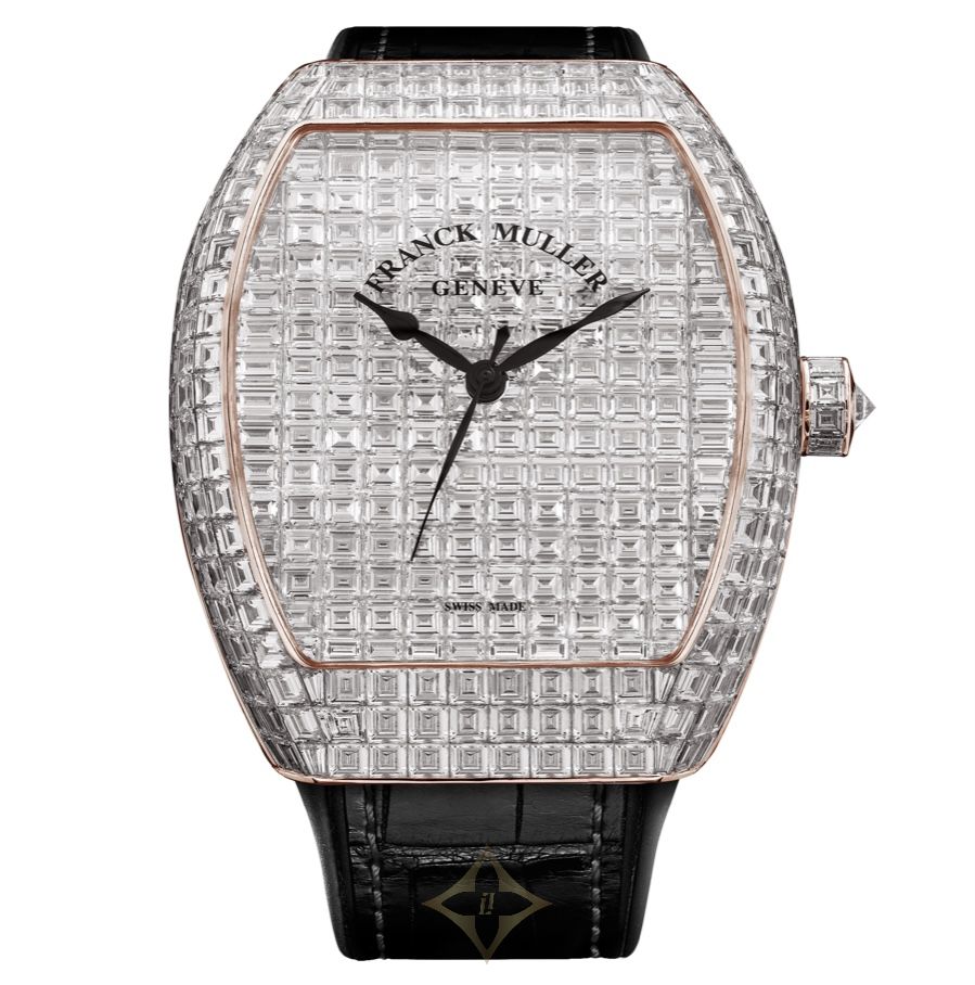 Franck Muller Vanguard Diamonds 44 x 53.7 mm V 45 SC INV C INV (NR) 5N DM BLK PRICE: £ 483,330 Incl. VAT Retail Price (EU): £597,881 (saving up to 19 %) DETAILS Brand: Franck Muller Reference: V 45 SC INV C INV (NR) 5N DM BLK Country of Manufacture: Switzerland Case material: Gemstones, Rose Gold / Pink Gold Case diameter (mm) : 44 x 53.7 mm Case Shape: Tonneau Thickness (mm): 12.7 mm Waterproof: 30 meters / 3 ATM Dial: Diamonds dial Movement: Automatic Movement Calibre: MVD FM 2536-SC Number of parts: 82 parts Power Reserve (h): approx. 42 hours when fully wound No. of Jewels: 21 jewels Frequency: 28800 v.p.h., 4 Hz Strap material: Black alligator leather Clasp (Buckle): Pin Buckle Buckle Material: 18K rose (pink) gold Description Franck Muller Vanguard Diamonds 44 x 53.7 mm watch. Model reference: V 45 SC INV C INV (NR) 5N DM BLK. 18K rose (pink) gold case set with diamonds. Diamonds dial. Automatic movement. Black alligator leather strap with pin buckle. Swiss made. The watch comes in the original packaging, with a set of documents and 2 years warranty. At Watches of Mayfair we offer new authentic watches at the best prices. ——— Watches of Mayfair Ltd London Concept Boutique BOUTIQUE ADDRESS 13 Shepherd Market, Mayfair, London, W1J 7PQ, UK Phone: +44 20 7629 5055 WhatsApp: +44 7917 880801 EMAIL: sales@watchesofmayfair.com