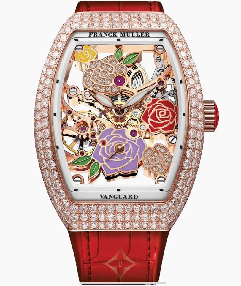 FRANCK MULLER VANGUARD ROSE SKELETON V 32 S6 SQT ROSE D CD 2RO 5N SKELETON ROSE (RGE) PRICE: AUD $75,300 Featuring hand-set diamonds and hand-painted rose motifs cut directly from its bridge and base plate, the Vanguard Rose Skeleton reveals an unbreakable winding movement within. Movement Manual winding movement Power reserve of 4 days Case Hand set with 313 brilliant-cut diamonds (3.14 carats) Vanguard case 18k rose gold Hand polished Sapphire crystal Width: 32 mm. Length: 42.3 mm. Thickness: 9.9 mm Strap Hand sewn alligator strap Dial Skeleton Hand set with 78 brilliant-cut diamonds (0 2 carats) ——— KENNEDY CEO - JAMES KENNEDY MELBOURNE KENNEDY CHADSTONE Chadstone Shopping Centre, Shop 444/ 1341 Dandenong Rd, Chadstone VIC 3148, Australia