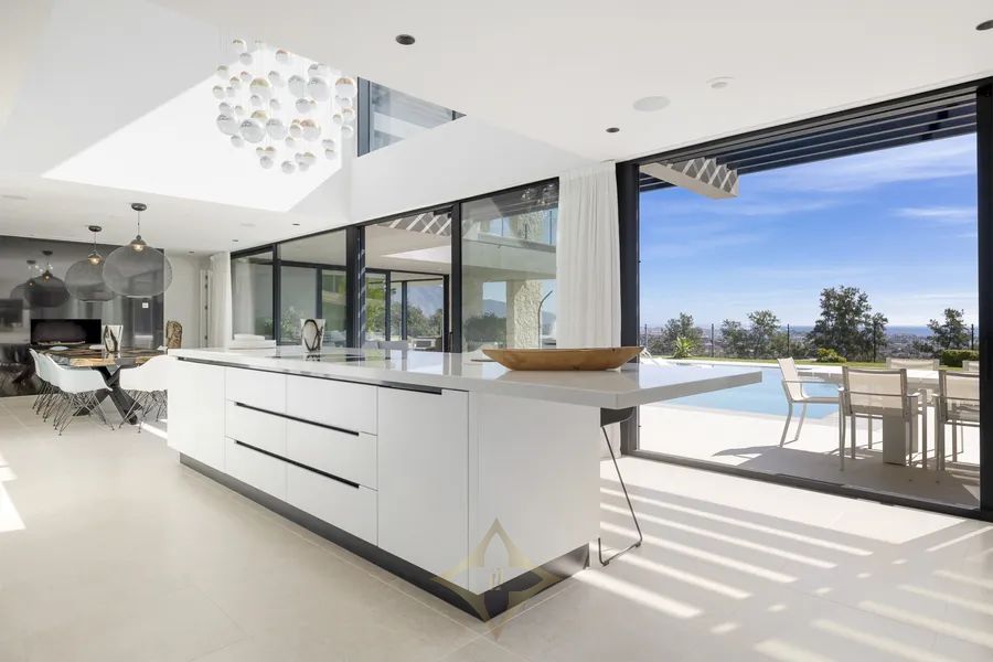 Newly built contemporary villa situated in the prestigious urbanization of La Alquería, Benahavís. Positioned frontline golf and facing east to south, the property offers panoramic views of the Mediterranean Sea, the coastline, and the iconic La Concha mountain.