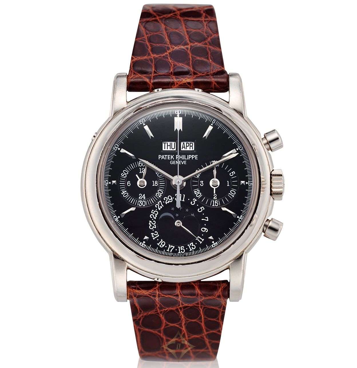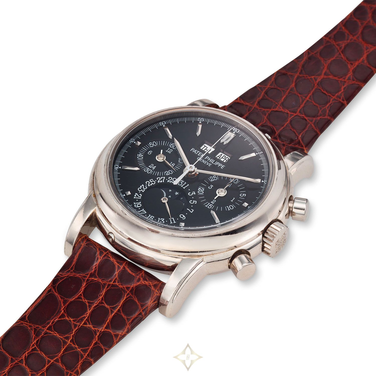 Patek Philippe 18K white gold perpetual chronograph with factory original black stick dial, made and sold in 2004