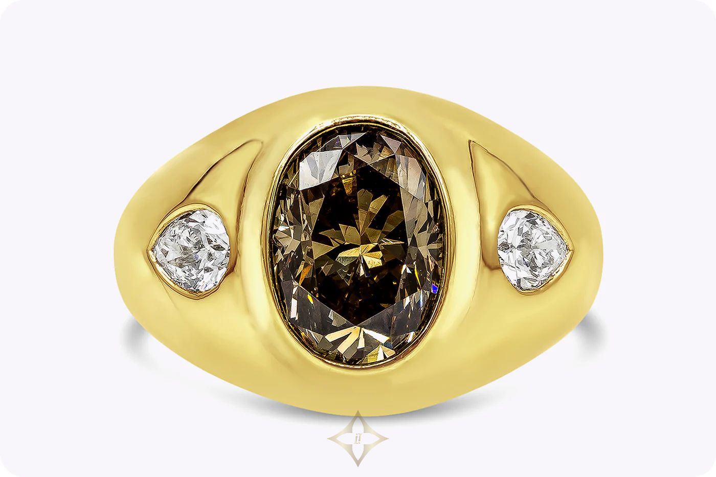 GIA Certified 3.01 Carat Oval Cut Fancy Brown Diamond Gypsy Fashion Ring in Yellow Gold | NY 🇺🇸