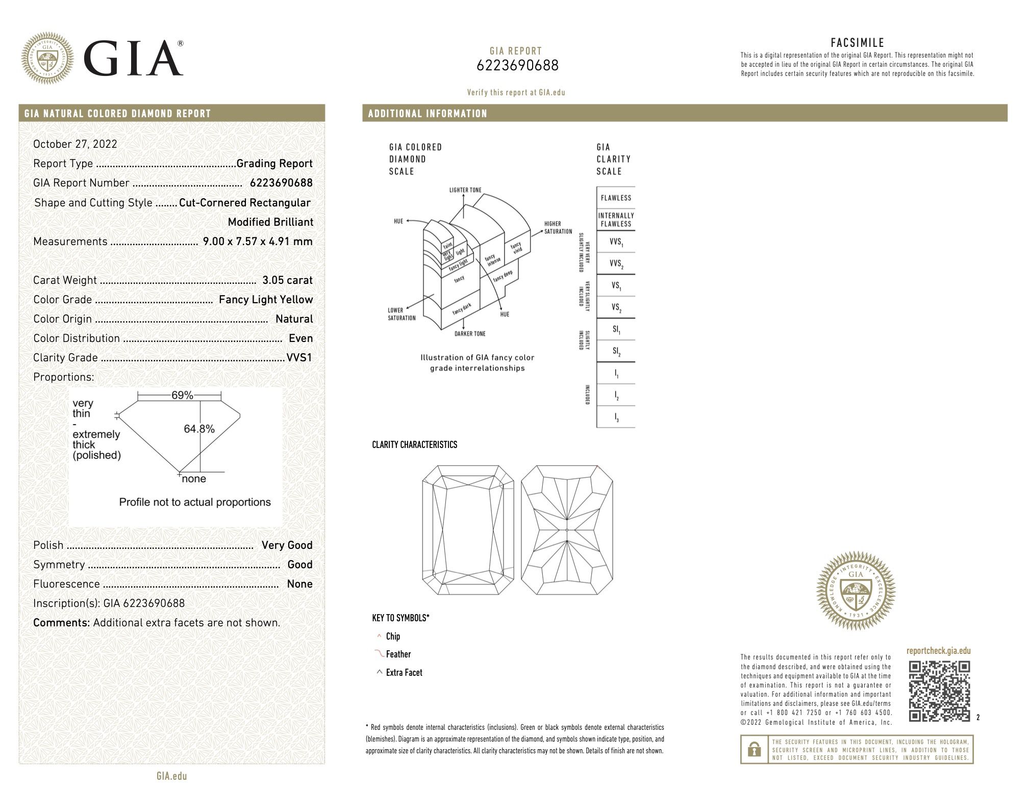 Accompanied by GIA report no. 6223690688, dated 27 October 2022, stating that the 3.05 carat diamond is natural Fancy Light Yellow color and VVS1 clarity with no fluorescence