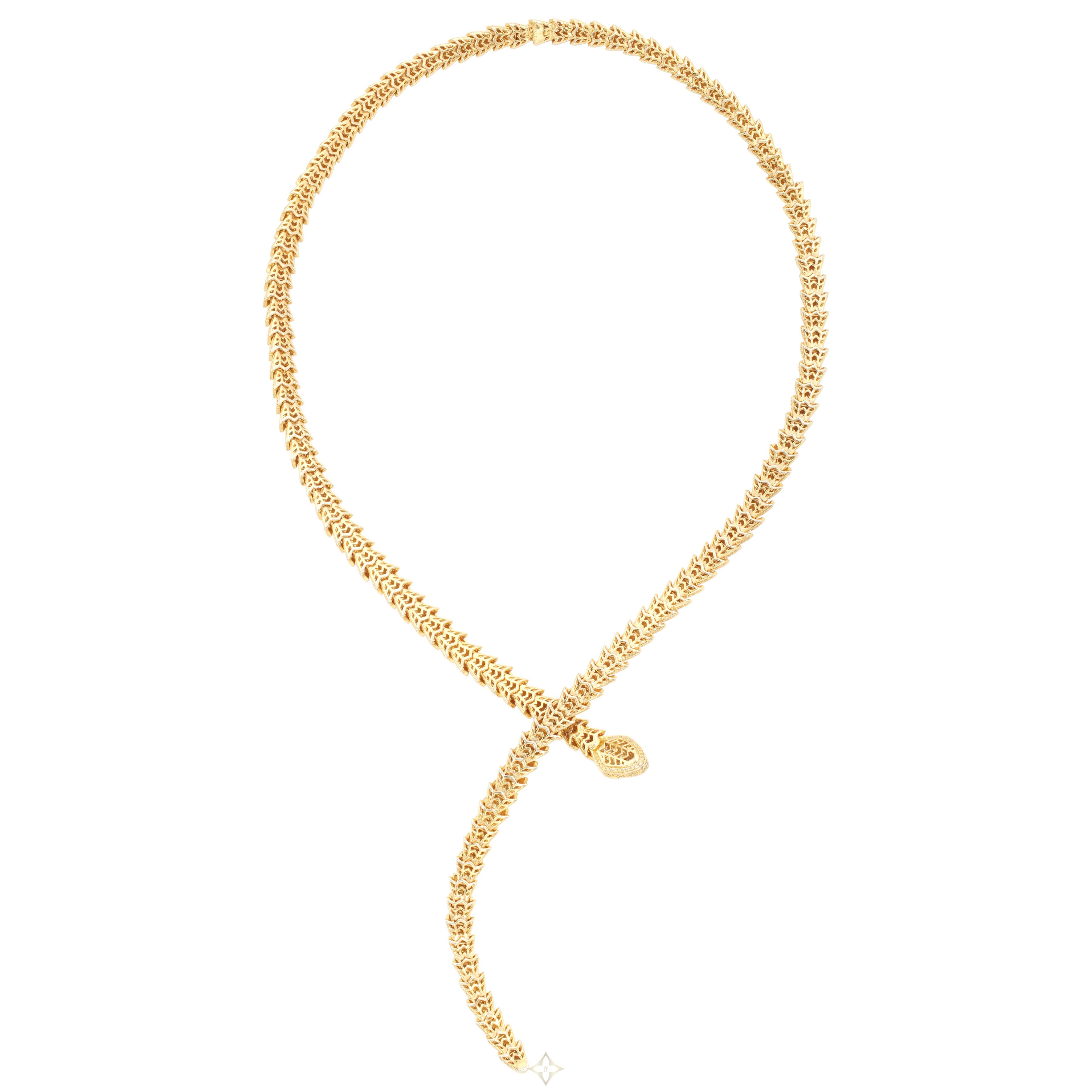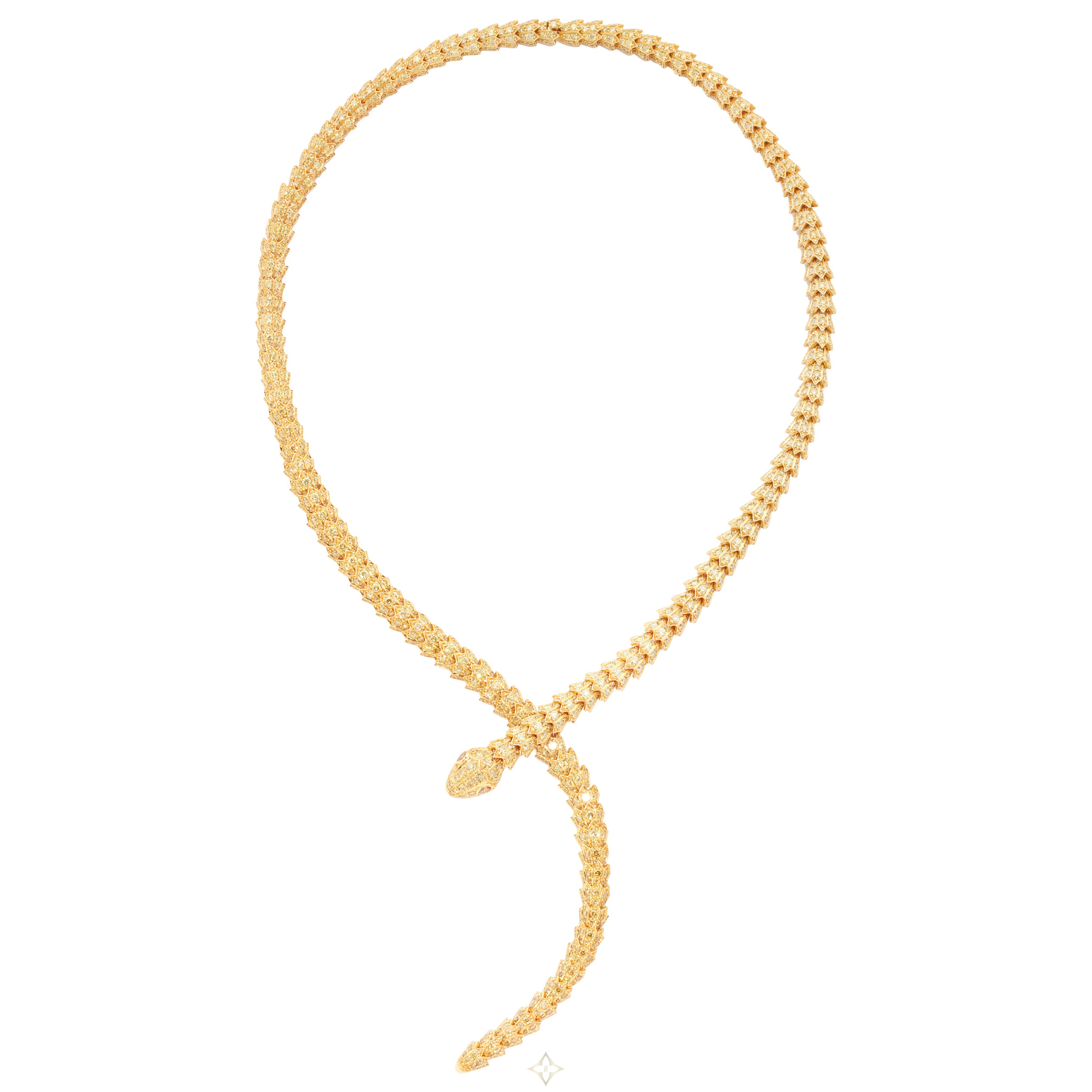 Long necklace designed as a serpent, accented by round brilliant-cut yellow diamonds.