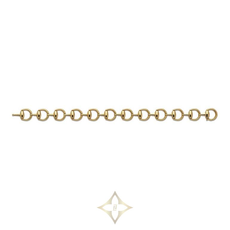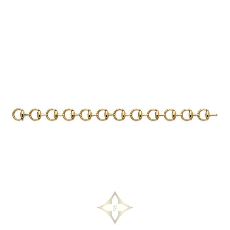 Gucci Horsebit 18ct Yellow Gold Bracelet Price: £5,460 Item code: G143040 Seamlessly blending traditional craftmanship with instantly recognisable details, this Gucci Horsebit 18ct Yellow Gold Bracelet symbolises rich heritage and iconic luxury. At A Glance Crafted in 18ct yellow gold Bracelet length – 17cm SPECIFICATION Supplier Code YBA796185001017 Range Horsebit Metal Gold Gold Type Yellow Gold Gold Fineness 18ct Bracelet Length 17cm Finish Polished Beaverbrooks Store Locator Oxford Beaverbrooks, 27 Queen Street, Oxford, OX1 1ER, London, UK Contact Anne-Marie (Store Manager) Phone: +44 1865 725591 Email: oxford.branch@beaverbrooks.co.uk